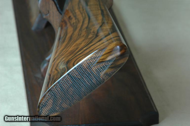 Description: Take this exquisite Scottish over/under in your hands and you just may hear the angels sing! With its exhibition grade highly figured walnut, full coverage Small Scottish Scroll engraving, and superb handling this McKay Brown is a joy to own and to shoot. Cased in a leather maker’s case with fitted cordoba outer cover. *** The frame on this special shotgun is beautifully engraved by Creative Art and case colored with gold engraved maker’s name on both sides. The forend metal is also fully engraved and case colored. Double triggers and auto ejectors top off a classic game gun in over/under configuration. The serial number is 80xx.The gun weighs 6lb 11oz. *** The 28" auto ejector barrels have 2 3/4" chambers and are choked 1/4 & 1/2. They are topped by a raised hand crosshatched solid rib. The highly figured walnut stock is straight grip with field style forearm. The stock dimensions are 14-3/8” to a checkered butt by 1-3/8” by 2”. *** This gun is virtually new with less than 150 rounds put through it. If you’ve ever been out on the heather covered Scottish moors you will know this is the gun for you. Life is short, write the check. ***** I give a 3-day non-firing inspection and will only accept returns if gun is not as described. SOLD |