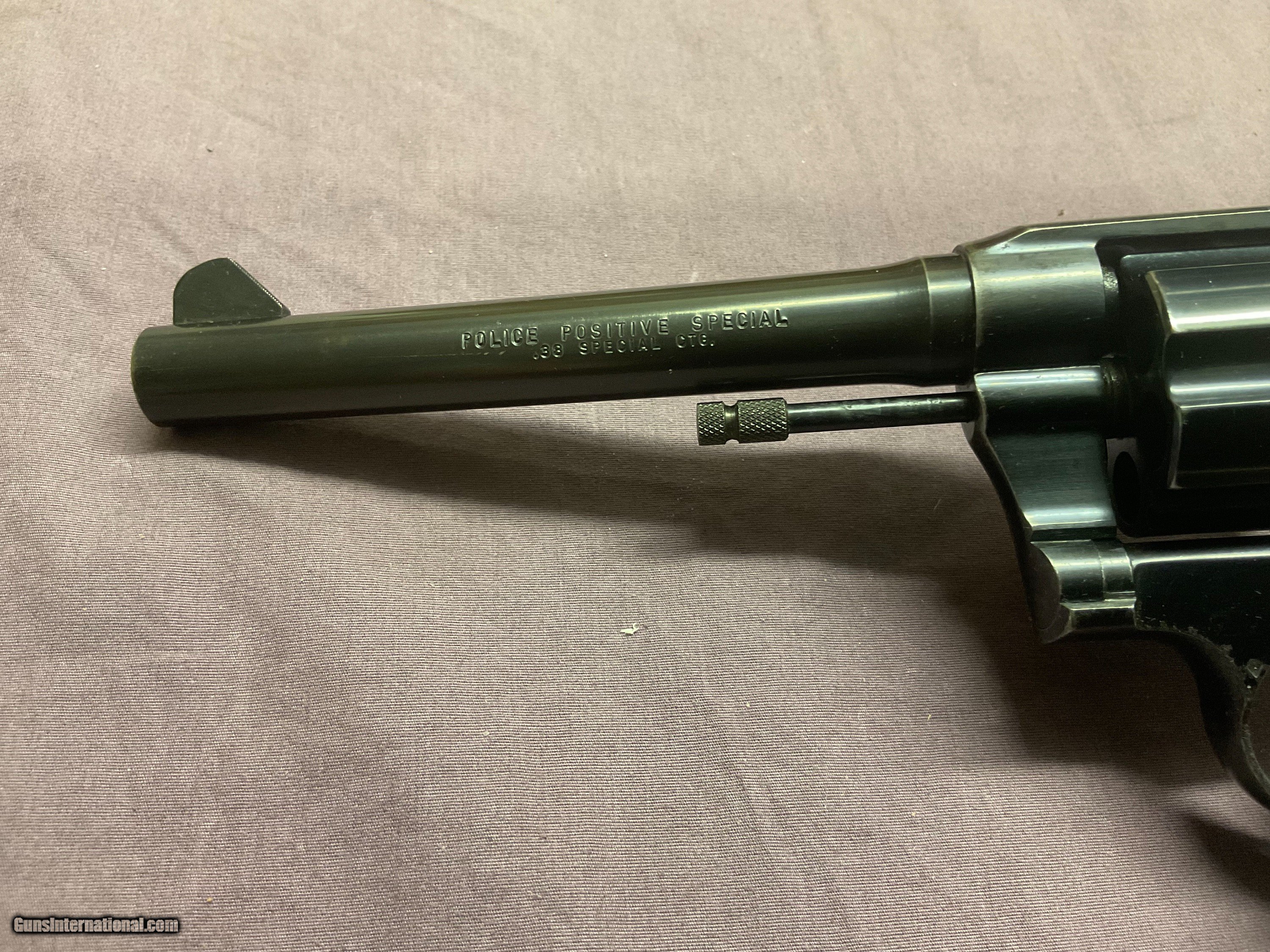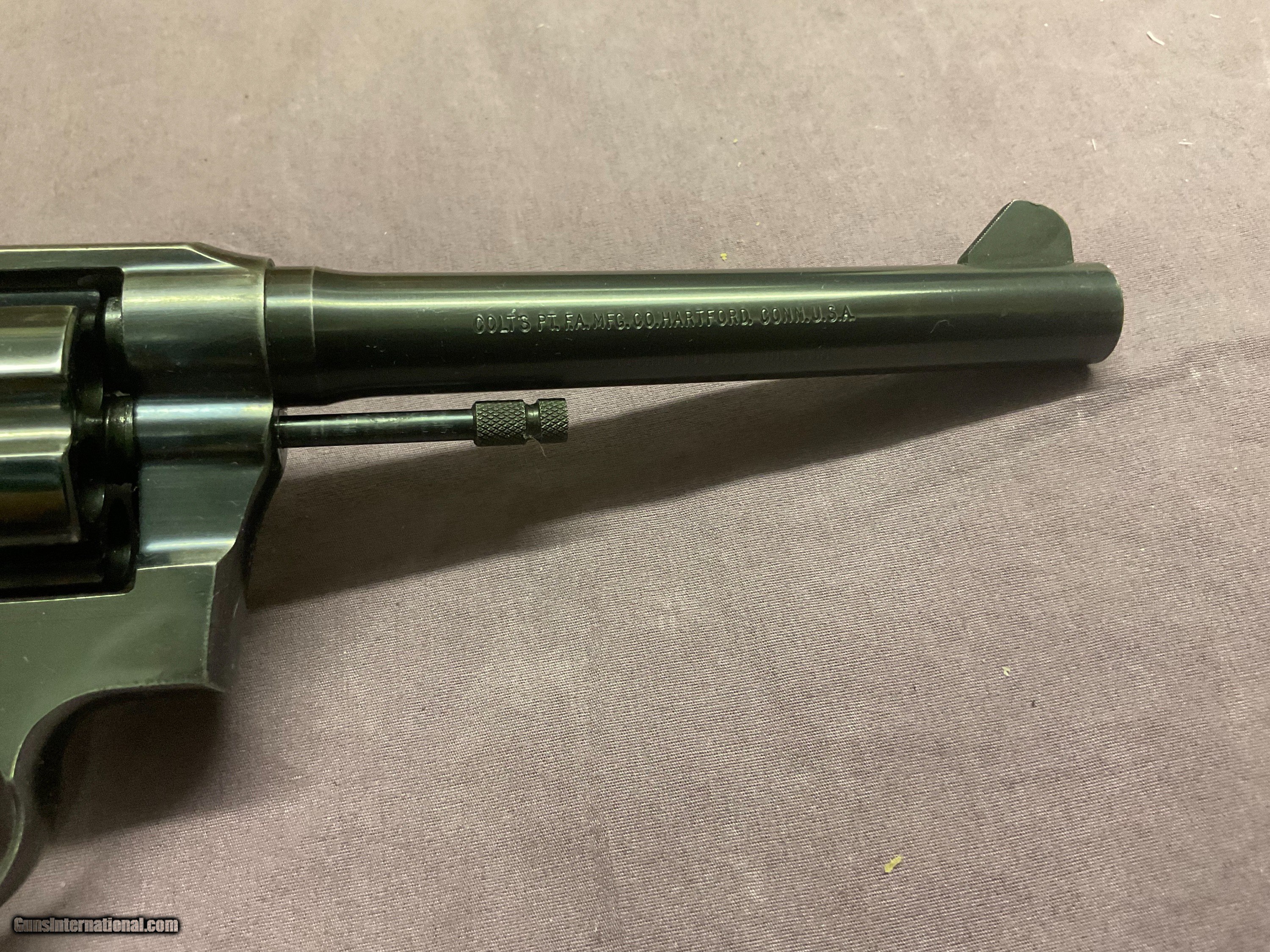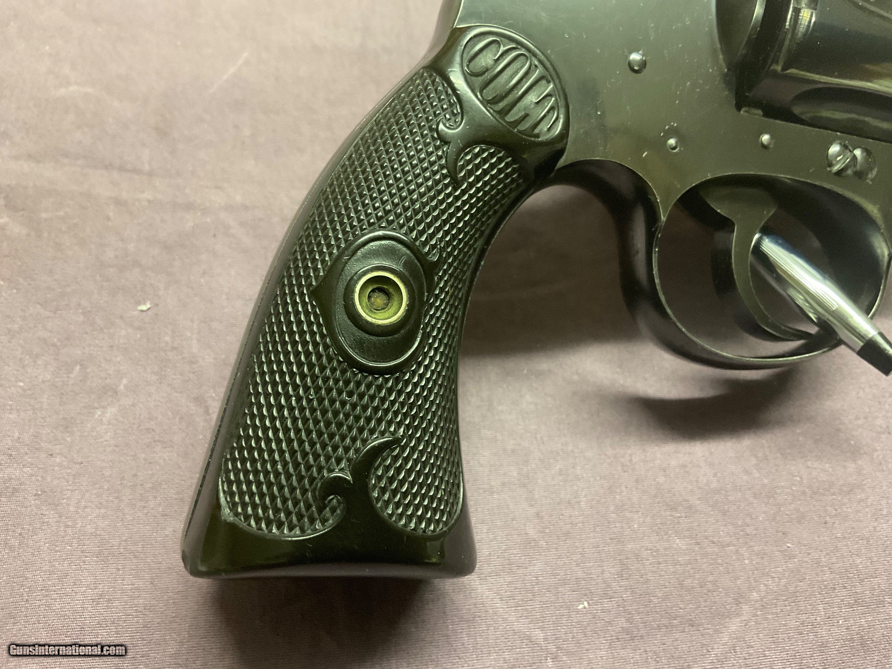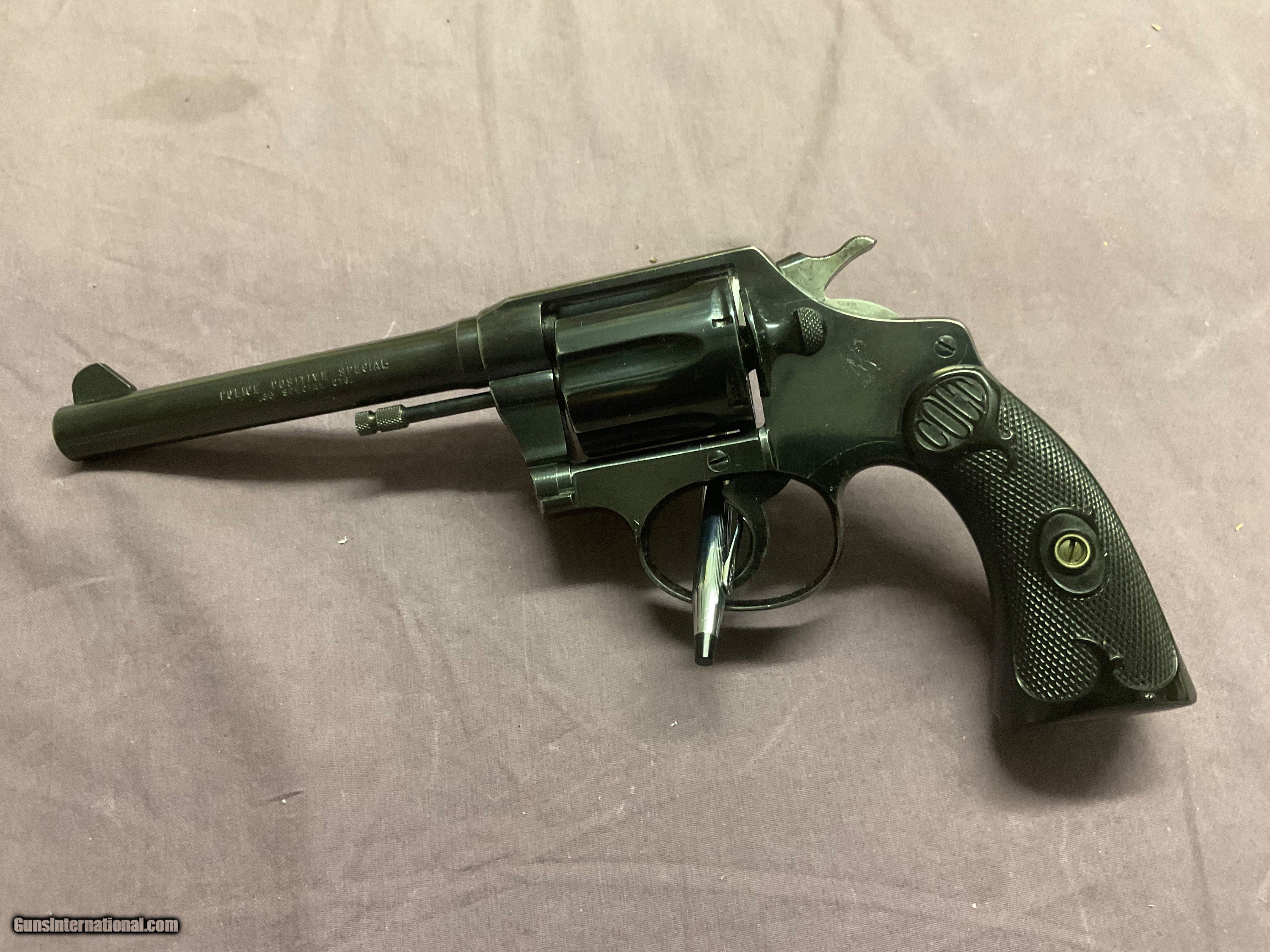 Description: Here's a rare bird. This Police Positive Special has seen almost no use ! I took this little guy all apart looking for dirt, rust, corrosion, wear, whatever. Found none of the above! It as clean inside as outside. There's no turn line and no sign of any issue any place on the gun. Thus gun is exactly 100 YEARS OLD!! ( It has been kept in a humidity controlled room). I searched the listings all over and found not one other 5" barrel. As I said, this is a rare bird! Thanks, Ed SOLD Handgun Caliber: .38 Special Manufacturer: Colt Model: POLICE POSITIVE SPECIAL 5” Serial Number: 282940 Barrel Length: 5” Condition: EXCELLENT Metal Condition: EXCELLENT Wood Condition: Plastic Bore Condition: EXCELLENT Manufacture Date: 1923 |