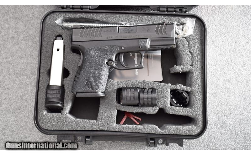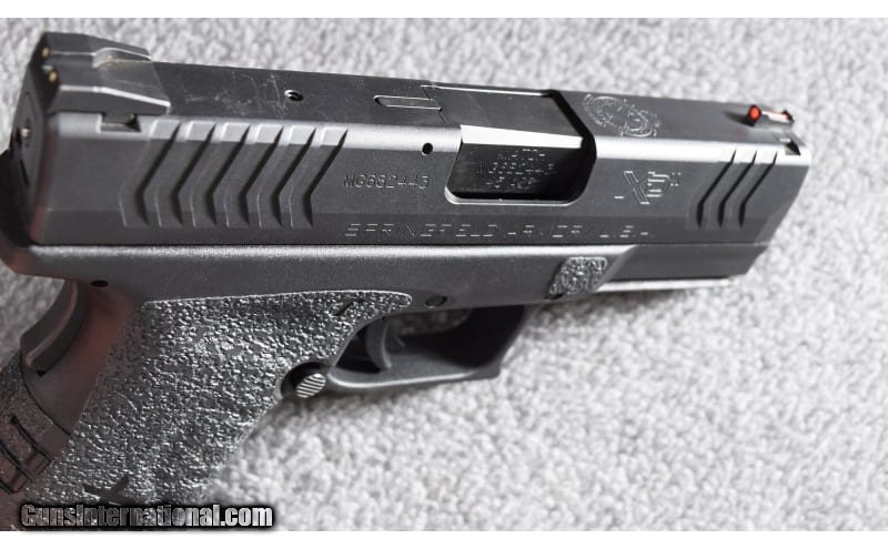 Description: This Springfield Armory XDM in .45 ACP is in excellent condition. It is equipped with a fiber optic red front sight and two dot white rear sights. An aftermarket rubber adhesive grip has been attached by a previous owner. The bore is bright and shiny. This pistol comes with the factory Springfield Armory case as well as two (2) magazines. .45 ACP SOLD Metal Condition: Excellent Bore Condition: Excellent Barrels: 3.75 Triggers: Factory Butt Pad: Black Polymer Grip With Rubber Attached Weight: 28 oz Sights: Fiber Optic Red Front - Serrated Two Dot White Rear Item Location: Wheeling |