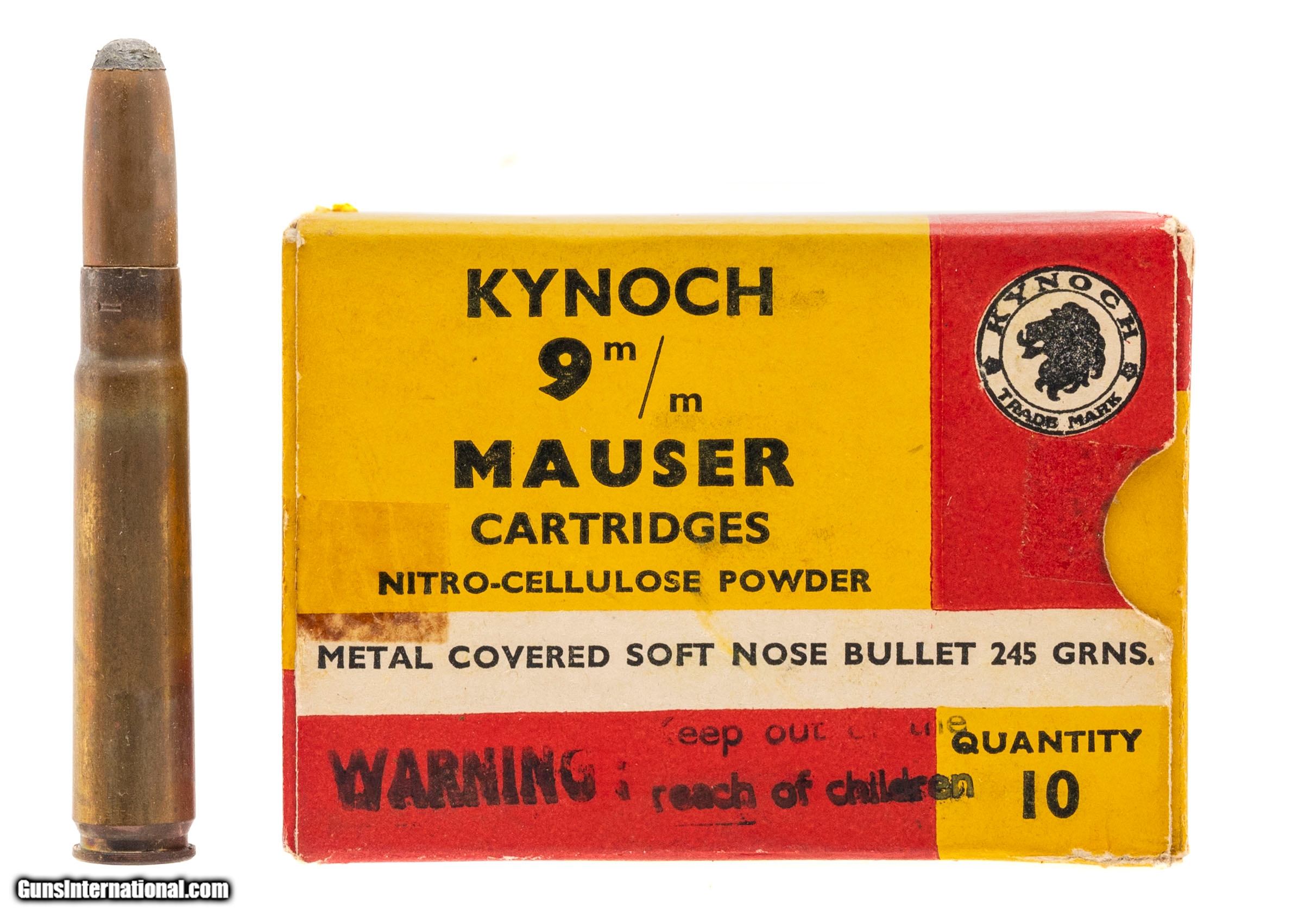 Description: "Complete box of Kynoch 9mmx57 Mauser Ammunition 245 Grain. SOLD |