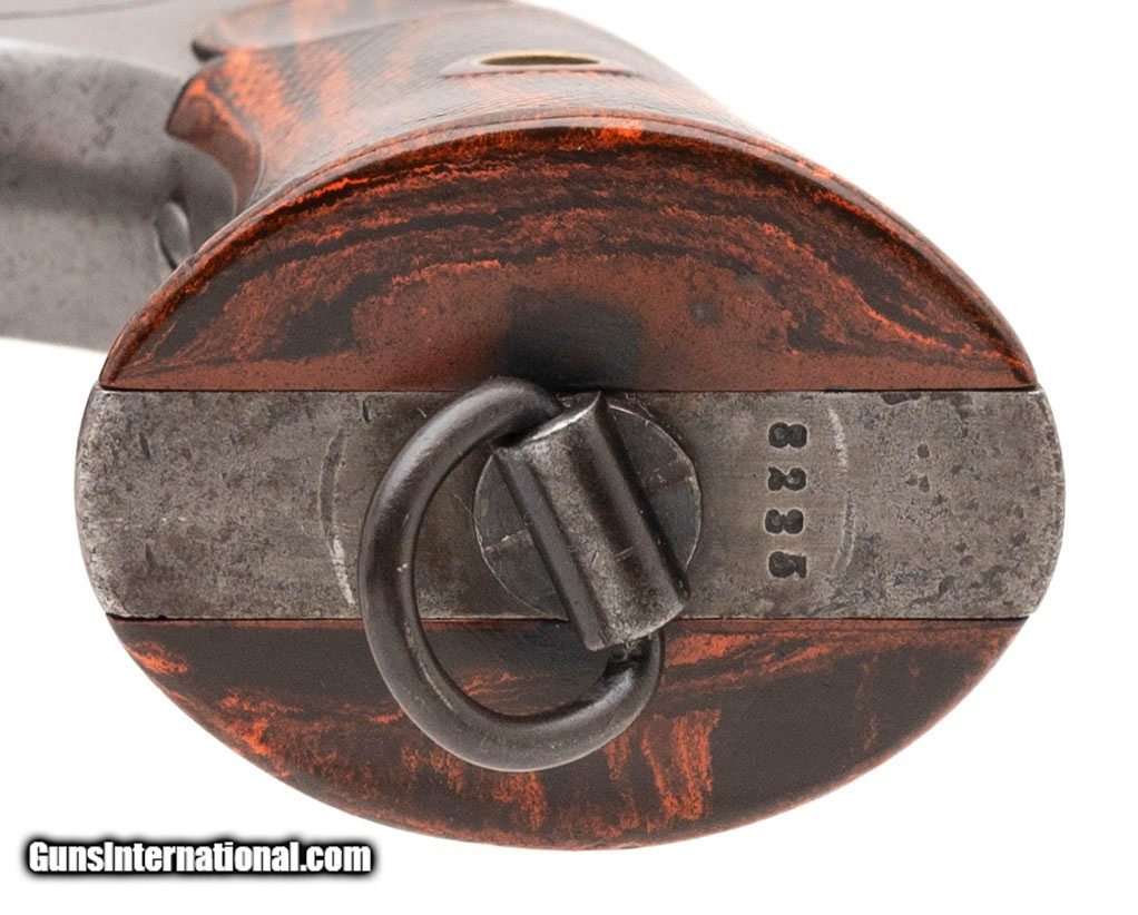 Description: "Serial number 8235. Made circa 1880s. 44 Merwin & Hulbert caliber with a 7" barrel. Nice sharp gun with blue in the flutes. Grips are very good mottled hard rubber. Markings are sharp. This gun comes with an original holster. SOLD Antique: Yes |