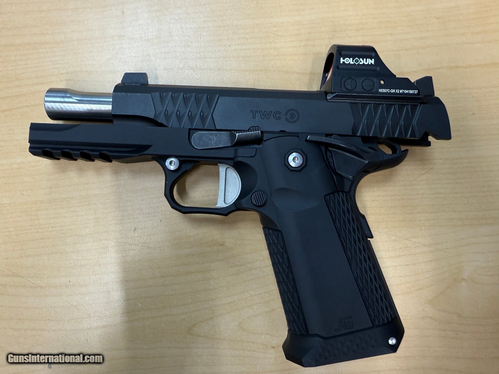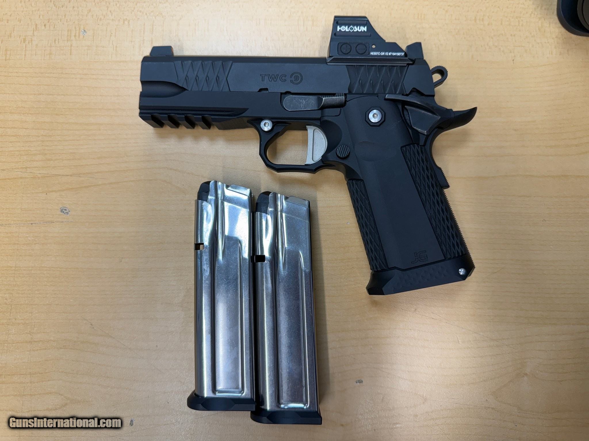 Description: Guns Listing ID: 561287 This 2011 has a 4.25in barrel and a tactical rail. It has a front fiber optic sight and two17rd magazines. It has an optic ready slide with a Holosun 507C green dot and a thumb safety. SOLD Manufacturer: JACOB GREY FIREARMS Model: TWC Caliber Info: 9MM LUGER (9X19 PARA) Condition: Used - Non-Certified Barrels: 4.25 BARREL Action: SEMI AUTOMATIC Finish: BLACK Weight: 1.9 lbs. |