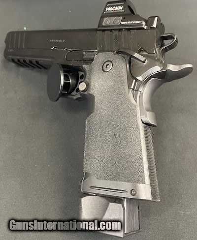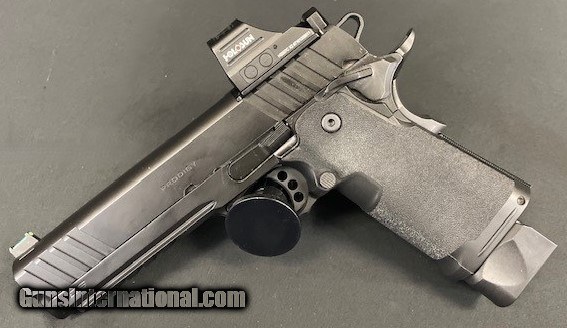 Description: Guns Listing ID: 577576 Springfield Armory PH9119AOS Prodigy DS 9mm Luger 20+1 5\" Stainless Match Grade Bull Barrel, Black Cerakote Optic Cut/Serrated Carbon Steel Slide & Frame w/Beavertail, Black Polymer Grip, Right Hand The Prodigy from Springfield Armory takes the proven 1911 platform and enhances it with double-stack capacity and a performance-driven feature set. Reconfigured around a double-stack magazine, the Prodigy‚s polymer grip module mounts to its forged steel frame offering capacities of 17+1 and 20+1. Optics ready with an ambidextrous safety and Picatinny rail the Prodigy combines the most beloved characteristics of the 1911 with modern capacity for unrivaled performance. Brand Springfield Armory Category Pistols Series Prodigy Model 1911 DS Caliber 9mm Luger Barrel Length Range 5\" to 5.99\" Gun Platform 1911 Style Capacity 17+1 Action SAO Frame Finish Black Cerakote OAL 8.50\" Frame Material Carbon Steel Hand Right Hand Slide Finish Black Cerakote Slide Material Carbon Steel Sights Fiber Optic Front / Serrated Rear Slide Description Optic Ready / Serrated Barrel Finish Stainless Barrel Material Stainless Steel Twist 1:16\" Frame Size Full Size Magazine Type OEM Grips Black Polymer Includes 2 Magazines Safety Ambidextrous Thumb / Grip Barrel Description Match Grade Bull Barrel Length 5\" Max Capacity 20 Trigger Skeletonized Weight 33 oz Frame Description Steel Frame w / Beavertail Manufacturer: SPRINGFIELD ARMORY Model: 1911 DS PRODIGY AOS Caliber Info: 9MM LUGER (9X19 PARA) Condition: Used - Non-Certified Barrels: 5" BARREL Action: SEMI AUTOMATIC Finish: BLACK Weight: 2 LBS. Price: $1,478.99 Contact Seller |