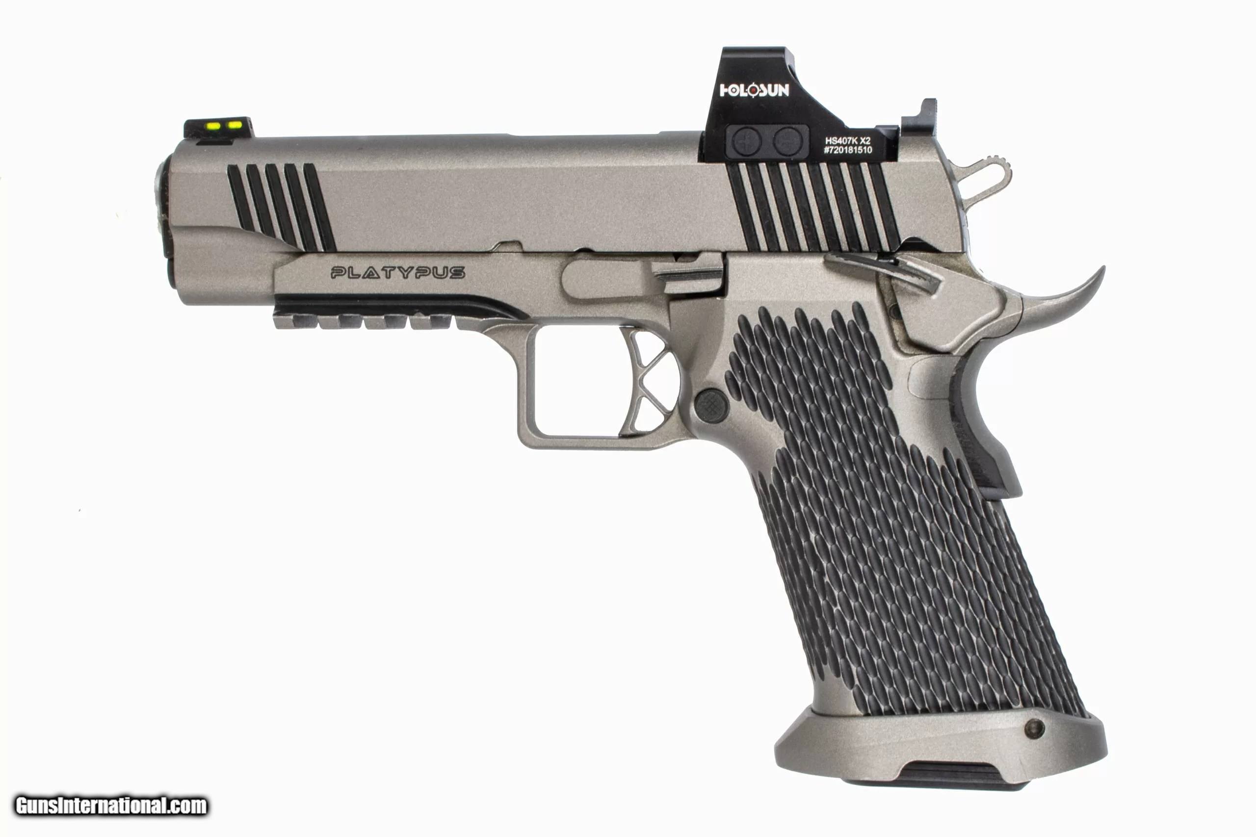 Description: Stealth Arms Platypus chambered for 9mm Luger with 4.25-inch barrel, gray finish with black backfill, Holosun HS407K X2, chainlink stippled grip, and compatibility with Glock 17 magazines. Includes soft case and two magazines. Action appears to be in excellent working order with bright, sharply rifled bore. The NRA grading condition for this USED firearm is Very Good. We ship domestically in the United States. Additional shipping rates apply to Alaska and Hawaii. Dury’s Lifetime Warranty: All firearms purchased from Dury’s Gun Shop, NEW or USED, are covered by a lifetime warranty. We will repair or replace, at our discretion, any firearm purchased from Dury’s Gun Shop, Inc. for as long as it is owned by the purchaser. This warranty is not transferable. WE BUY GUNS! NO COLLECTION TOO BIG OR SMALL FOR OUR GUNS INTERNATIONAL CUSTOMERS ALL OF OUR FIREARMS CAN BE PURCHASED DIRECTLY FROM OUR DURY’S GUNS SITE ! SOLD Manufacturer: Other Model: Platypus Caliber Info: 9 mm Barrels: 4inches |