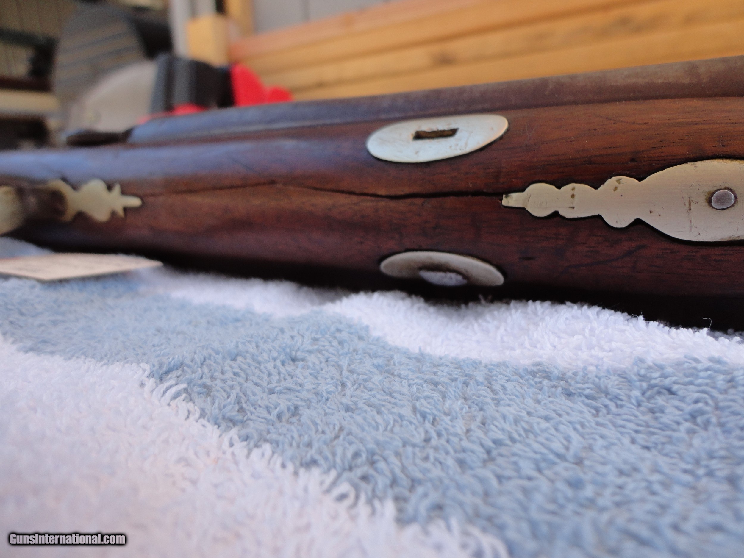 Description: *** NEW PRICE *** Locks and triggers work well Damascus barrels, walnut stock with silver inlays, has cracks (see photos) Neat old gun. No FFL, ships straight to you Please refer to the photos to further assess the condition of the rifle. If you use the Guns International inquiry form to contact us, please make sure to check the email associated with your GI account for our response. We are on the west coast (pst), so please excuse any lag or delays on our responses to you. If paying by credit card, you will need to provide a valid email address for us to send your invoice to for payment. Credit card payments have a 4% additional charge. Guns ship once payment and FFL (if applicable) are received by us. All guns ship insured and tracked. We are private sellers so please make sure your FFL Dealer of choice for shipping accepts shipments from private sellers. Also please make sure that the gun you are purchasing is legal to own in the state where you reside, we are not responsible for knowing all the laws for all 50 states. Thanks for looking. SOLD Antique: Yes |