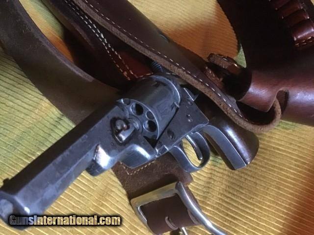 Description: 3 inch black powder walnut grips 25 caliber steel frame. See pixs top of barrel has only markings . Please have gunsmith inspect etc prior to any attempt at using .old pre 1898. Price includes FedEx ground fully insured tracked delivery to your FFL if your state stipulates other wise sent to buyer nite only if not prohibited by statue from owning black powder. This old antique 1898 revolver sold Asis no returns accepted no warranty expressed and is only sold as parts..payment by usps money order only. PayPal Once did ... not since pre 2012 .domestic sales Only .no international. SOLD Antique: Yes Manufacturer: Indigenous Model: Revolver Barrel Length: 3 inch Condition: Good Wood Condition: Exc Bore Condition: Smooth Manufacture Date: 1888 |