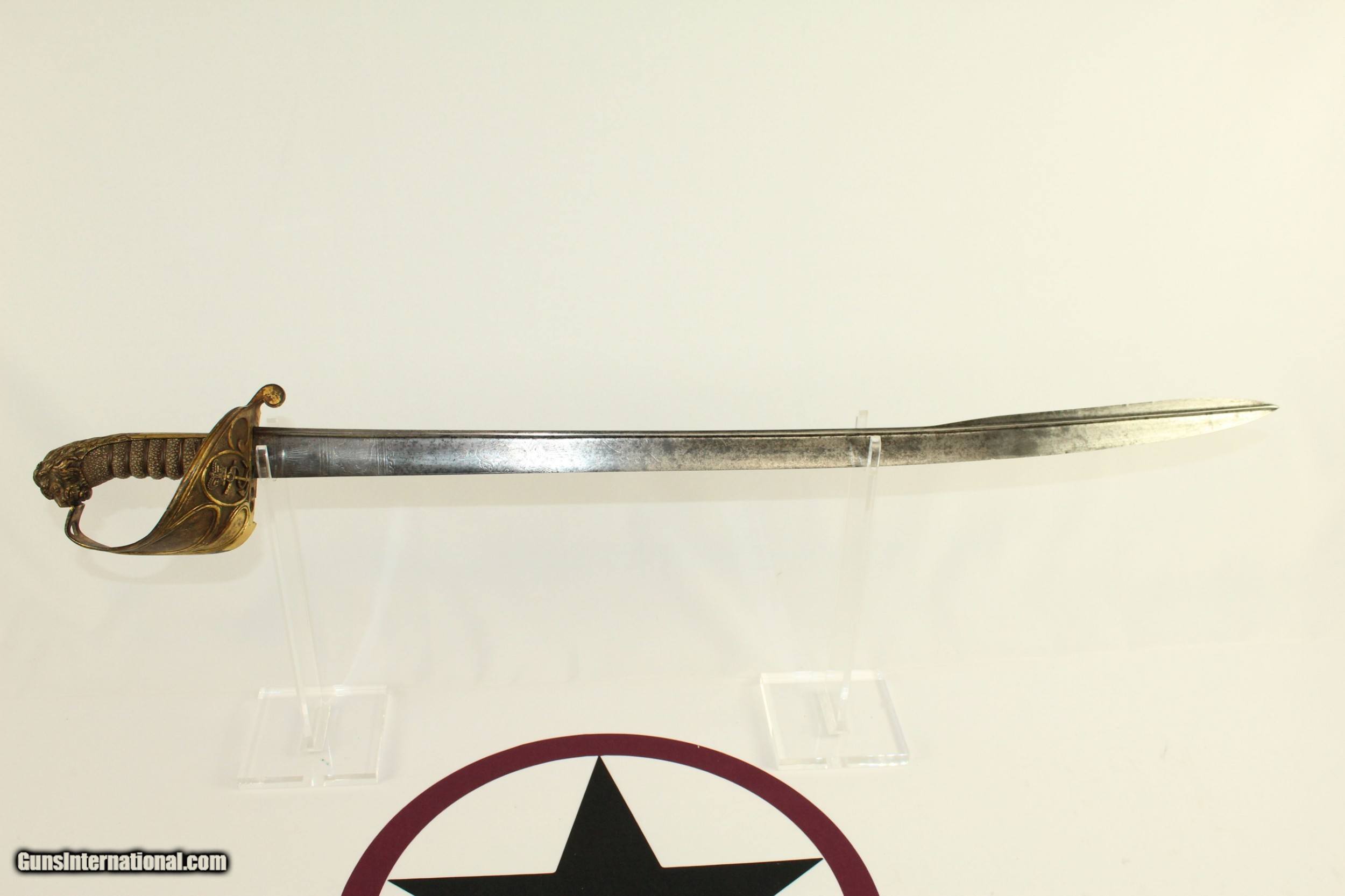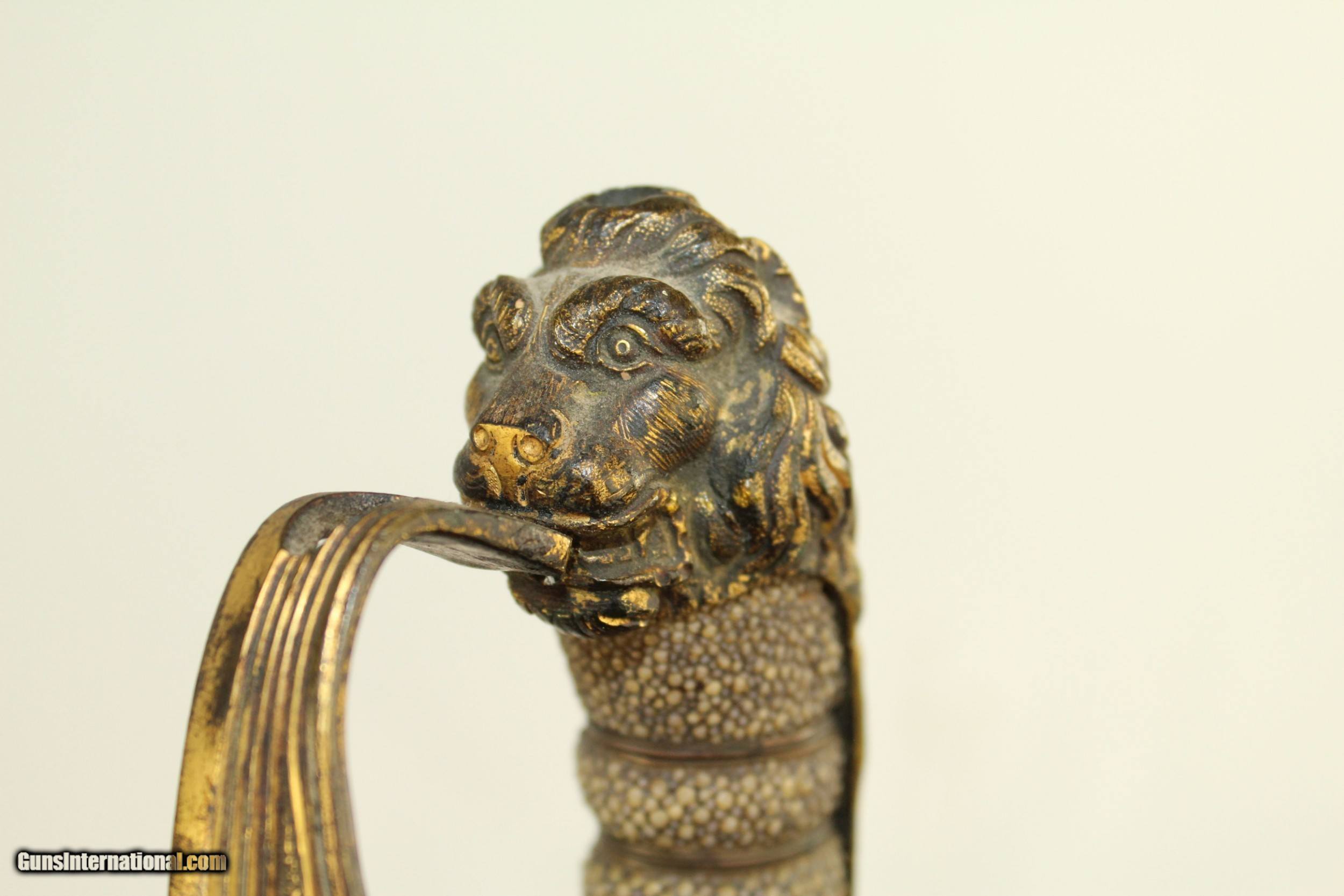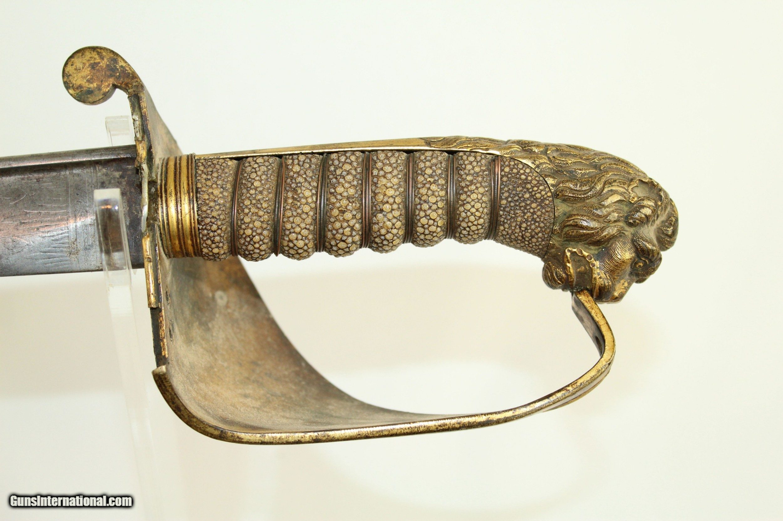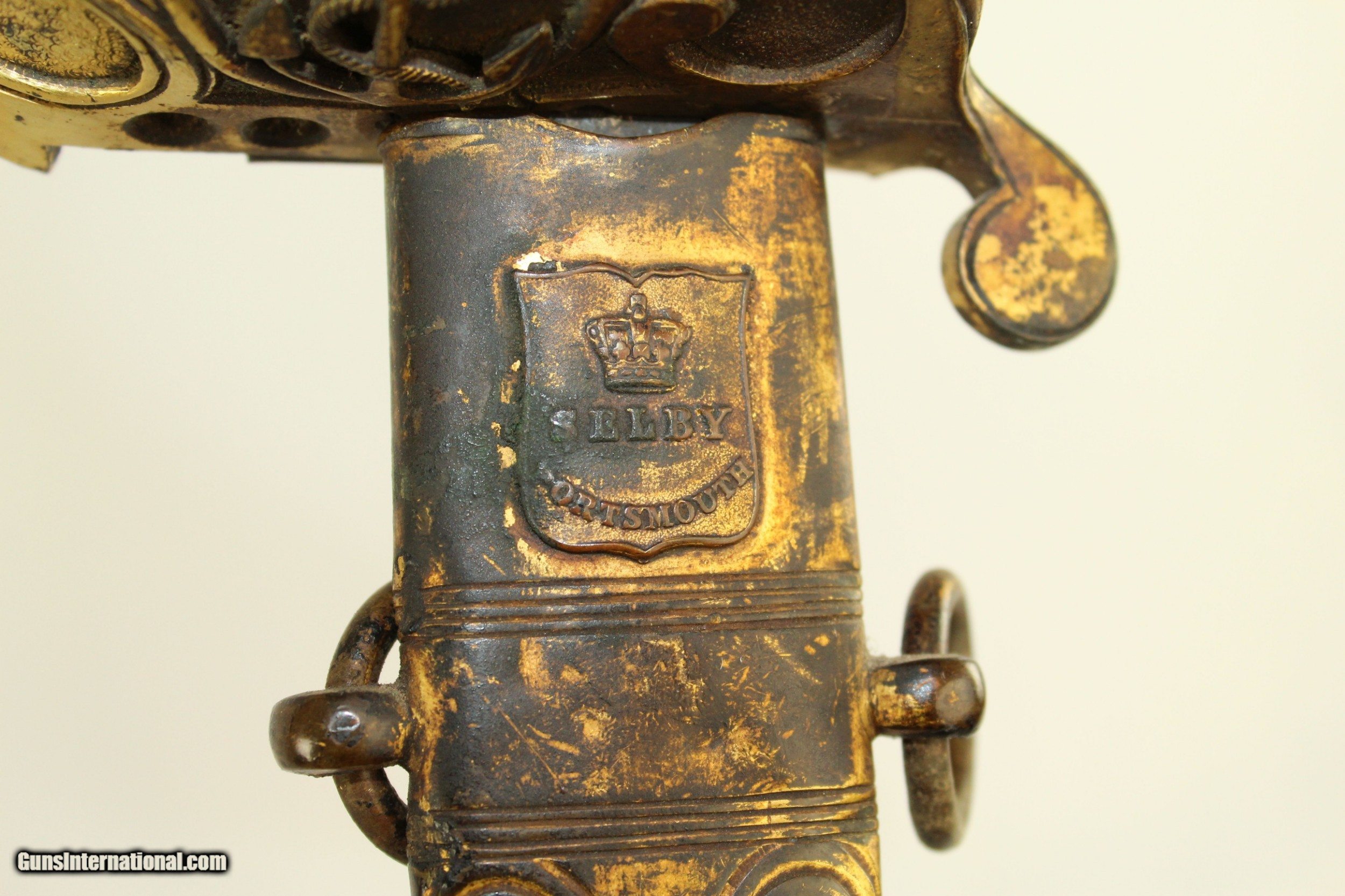 BRITISH Antique SELBY PORTSMOUTH Officer’s Sword Circa 1830 Lion’s Head Pipeback Naval Sword