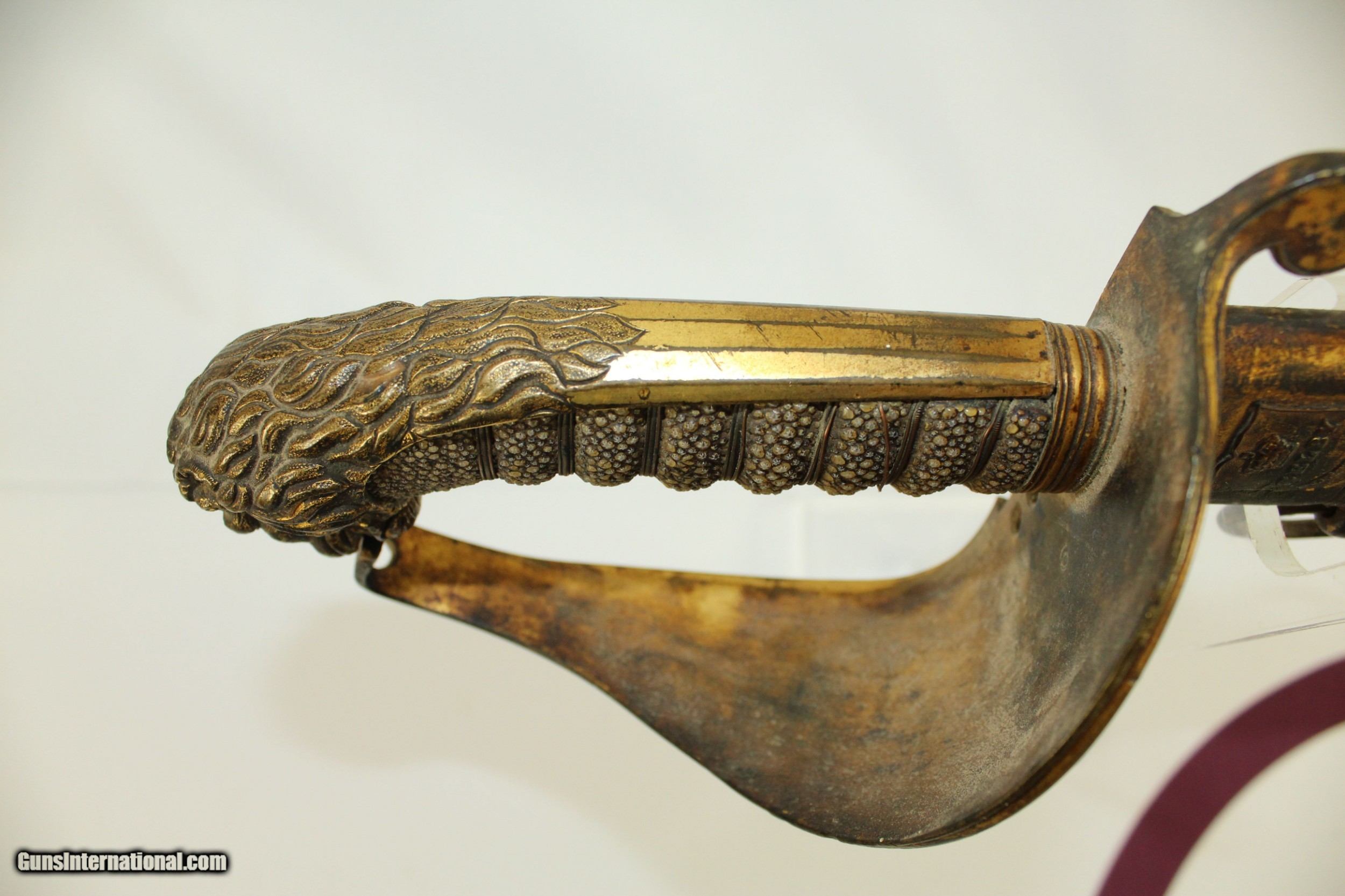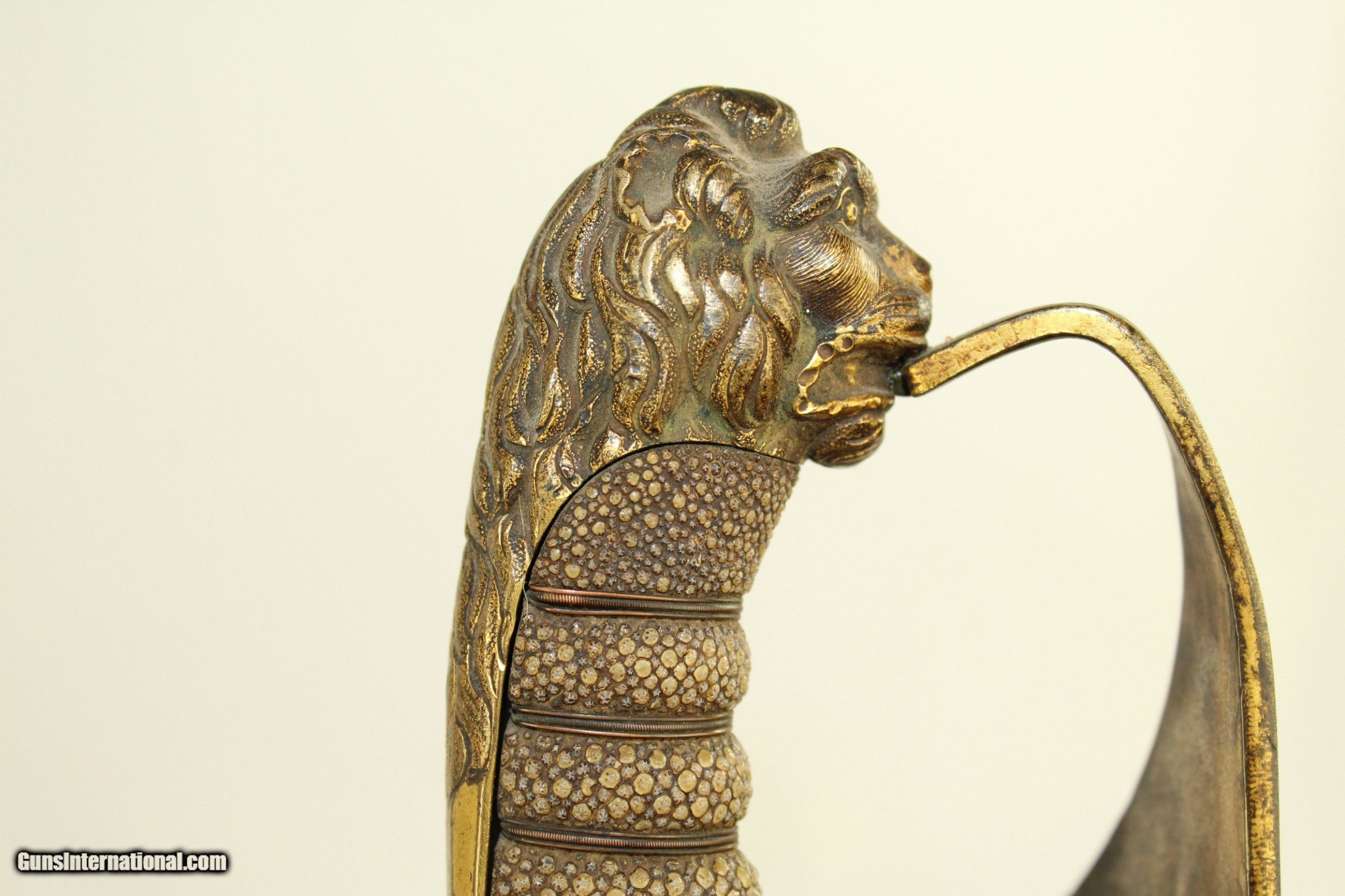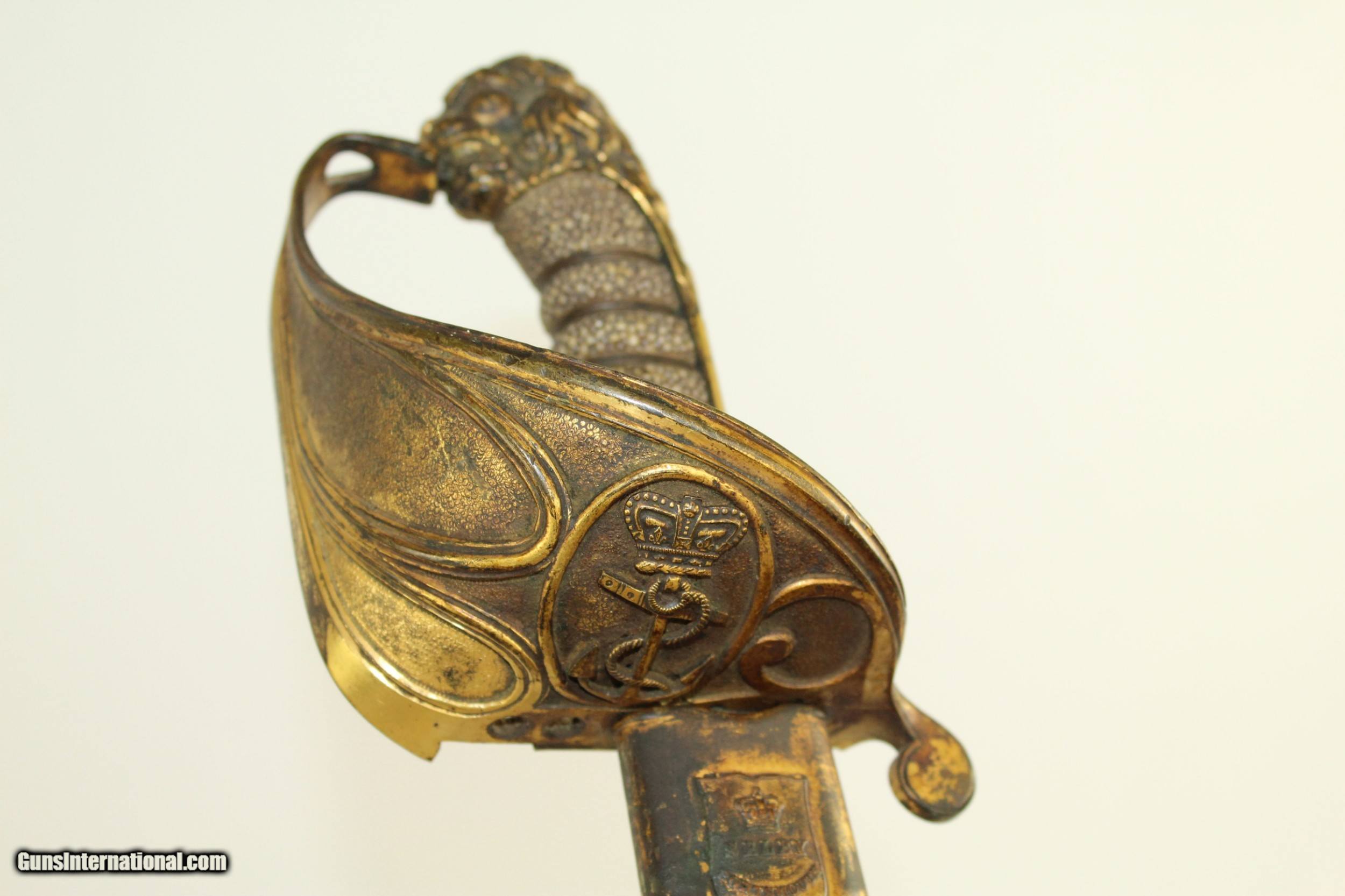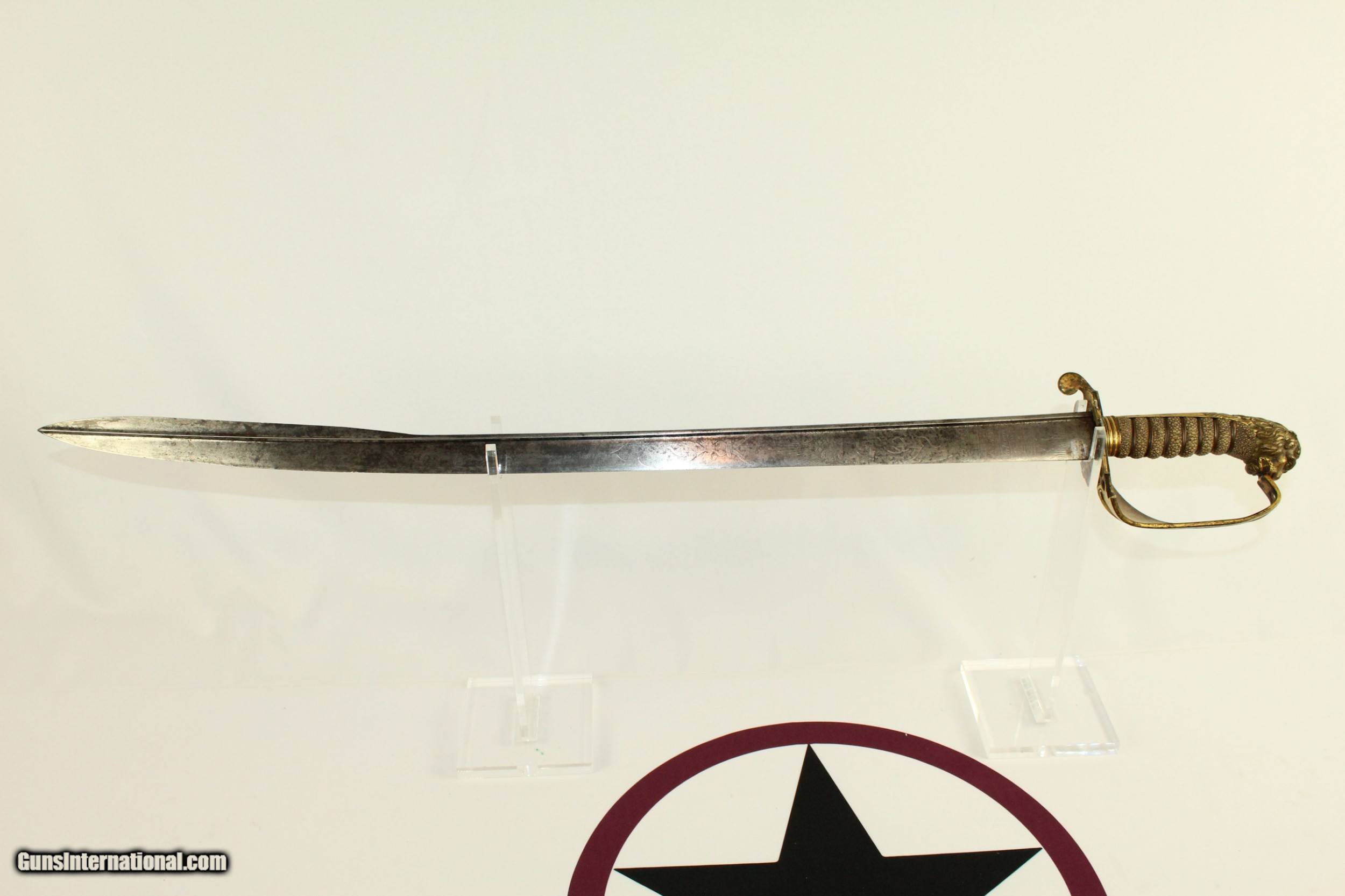 BRITISH Antique SELBY PORTSMOUTH Officer’s Sword Circa 1830 Lion’s Head Pipeback Naval Sword