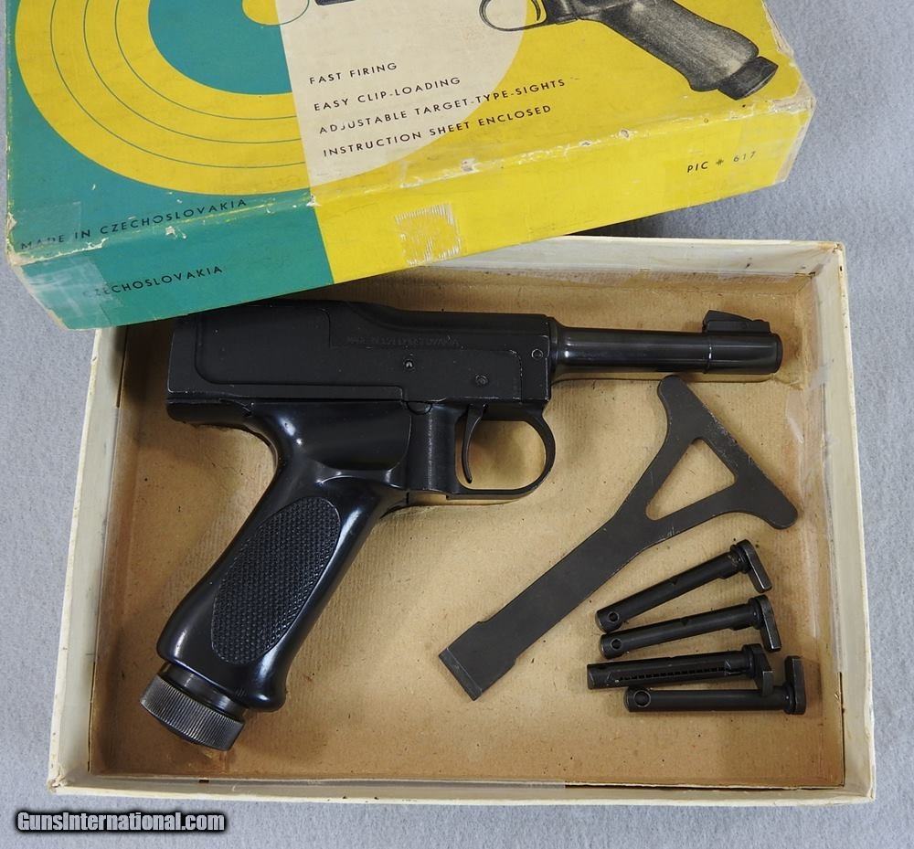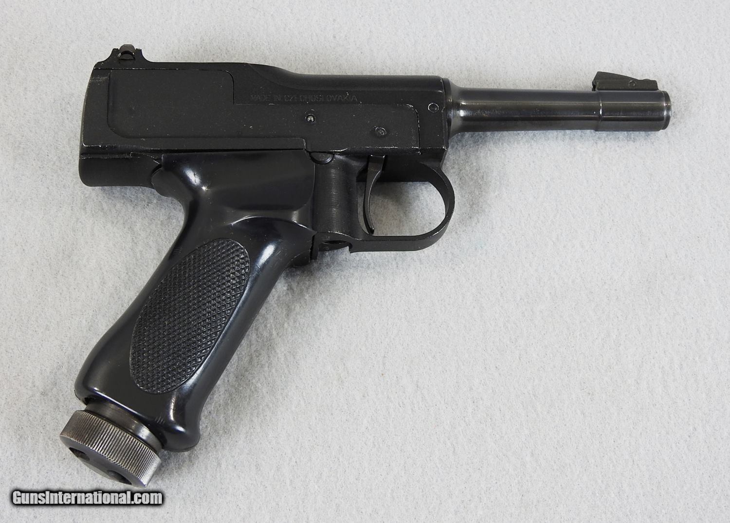 Description: This little semi auto retail 95% of the original black finish and comes with a total of 4 magazines, that is 3 extra and the original box, paperwork, test target and the accessory tool. I have not test fired it and after over 50 years the two O rings most likely will need to be replaced. These were made from the mid to late 1960s. I would consider trades for pre 1899 ANTIQUE PISTOLS and rifles on any of my items.. WHAT DO YOU HAVE TO TRADE? Ask about our 30-90 day lay-away program. We accept Bank Check, Money order, Personal checks or wire transfer. SOLD Antique: Yes |