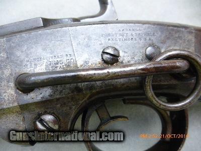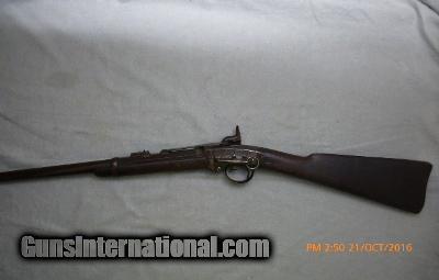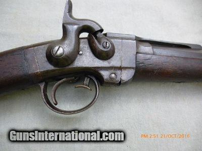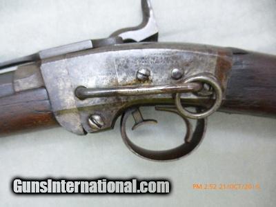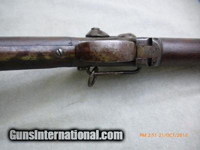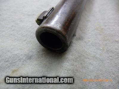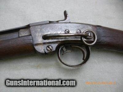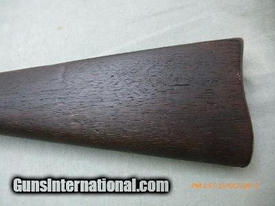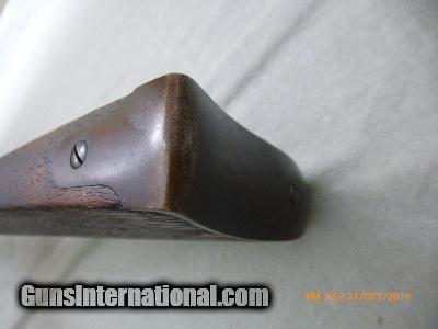 Description: SMITH CARBINE 15-128 SMITH CARBINE 15-128 Condition: Barrel has 95% of the blue, some a little dark; frame has 30% case colors, with balance silvering out, and a little discoloration. Wood is very fine with a very few dents and dings, very feint outline of stock cartouches present; bore is fine with 85% of rifling and shiny, But a little corrosion, apparently was issued and used a little bit to show a little wear, but Bore still in fine condition. Works well mechanically. Serial # 1830. A nice very fine Smith Carbine for shooter/collector. (15-128) $1,900.00 Smith Carbine. Made by American Machine Works, Springfield, Massachusetts, Massachusetts Arms Co. 1861-35. Totally quantity estimated over 30,000. 50 caliber, percussion, breechloader. Single shot, loaded by depressing the latch ahead of the trigger which releases barrel allowing it to pivot downward giving the appearance of folding in half. 21-5/8” round barrel. Octagonal to rear of barrel band. Iron mountings; standard finish blued, with casehardened breech. Walnut stocks. Sling ring mounted on left side of the breech; early carbines by Mass. Arms Co. (only).On left side of the breech: Address/Poultney & Trimble Baltimore, U.S.A. and Smith’s Patent/June 23, 1857. The Smith was Patented Gilbert Smith, Buttermilk Falls, New York, and agents were Thomas Poultney and D.B. Trimble, Baltimore. Almost the entire production was purchase by the government. I take Visa/MasterCard, add 3%. Allow two weeks for all checks, whether bank, personal or certified to clear. It is also possible to wire funds to my account for instant credit for a $20.00 wire charge. 3 day- no questions asked return period for refund of price paid for gun. (Not including shipping or credit card charges). All sales subject to prior sale at other sites or from shop. Call or email with any questions or for more pictures. Guns are antique and should not be fired without examination by gunsmith. $56 shipping for long guns, which includes a heavy cloth gun sleeve, which the buyer keeps, or a hard rifle case for an additional $25; $30 for hand guns to lower 48 states, overseas shipping has recently become very difficult, depending on the country. Please notify me before purchasing. We can generally get domestic insurance if you want it through shipper, but coverage is limited. Notify me if you want it. You can send 20% down- balance in 90 days for installment payment plan. No refunds on installment plans. I have shipped to Norway (long gun w/fragile stock) see feedback, England (Winchester1876, Rem. Dbl. Derr.), Northern Ireland, France, Australia and Sweden. Email if you are not U.S. for estimated shipping costs, payment methods, etc. I am always buying and trading for antique and collectible guns, Indian items, rare ammo, etc. Email what you have got for sale or trade. SOLD Antique: Yes Serial Number: 1830 |