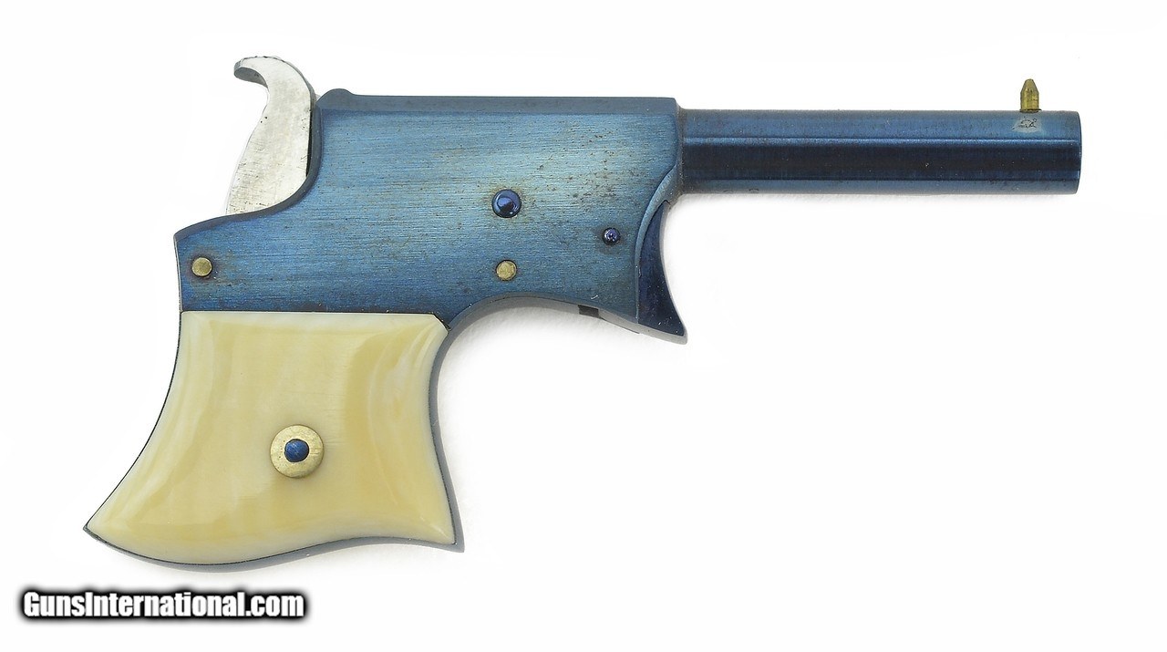 Description: "Cased Remington Vest Pocket Miniature. Unknown maker. Quality is excellent. Beautiful blued finish. Very fine grips. Nicely made case with a cleaning rod. SOLD |