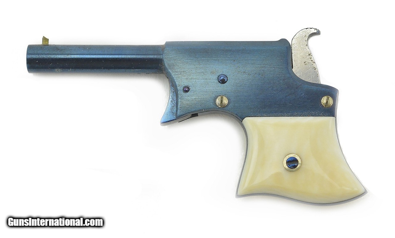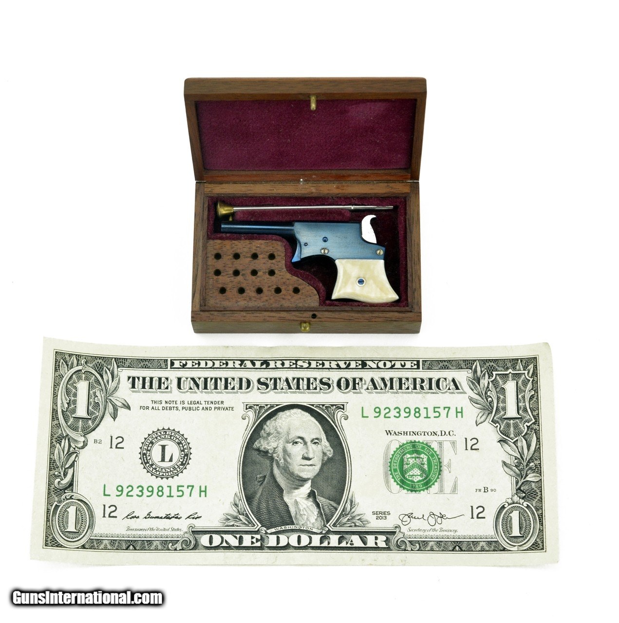 Description: "Cased Remington Vest Pocket Miniature. Unknown maker. Quality is excellent. Beautiful blued finish. Very fine grips. Nicely made case with a cleaning rod. SOLD |