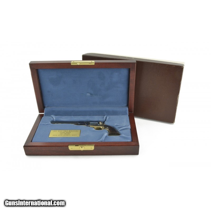 Description: "Colt 1851 Navy Square Back Miniature Revolver. Made by Colt for the U.S. Historical Society. Serial number 156. Mint condition. Comes with original case and outer box. SOLD |