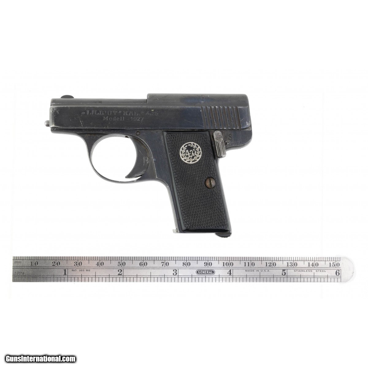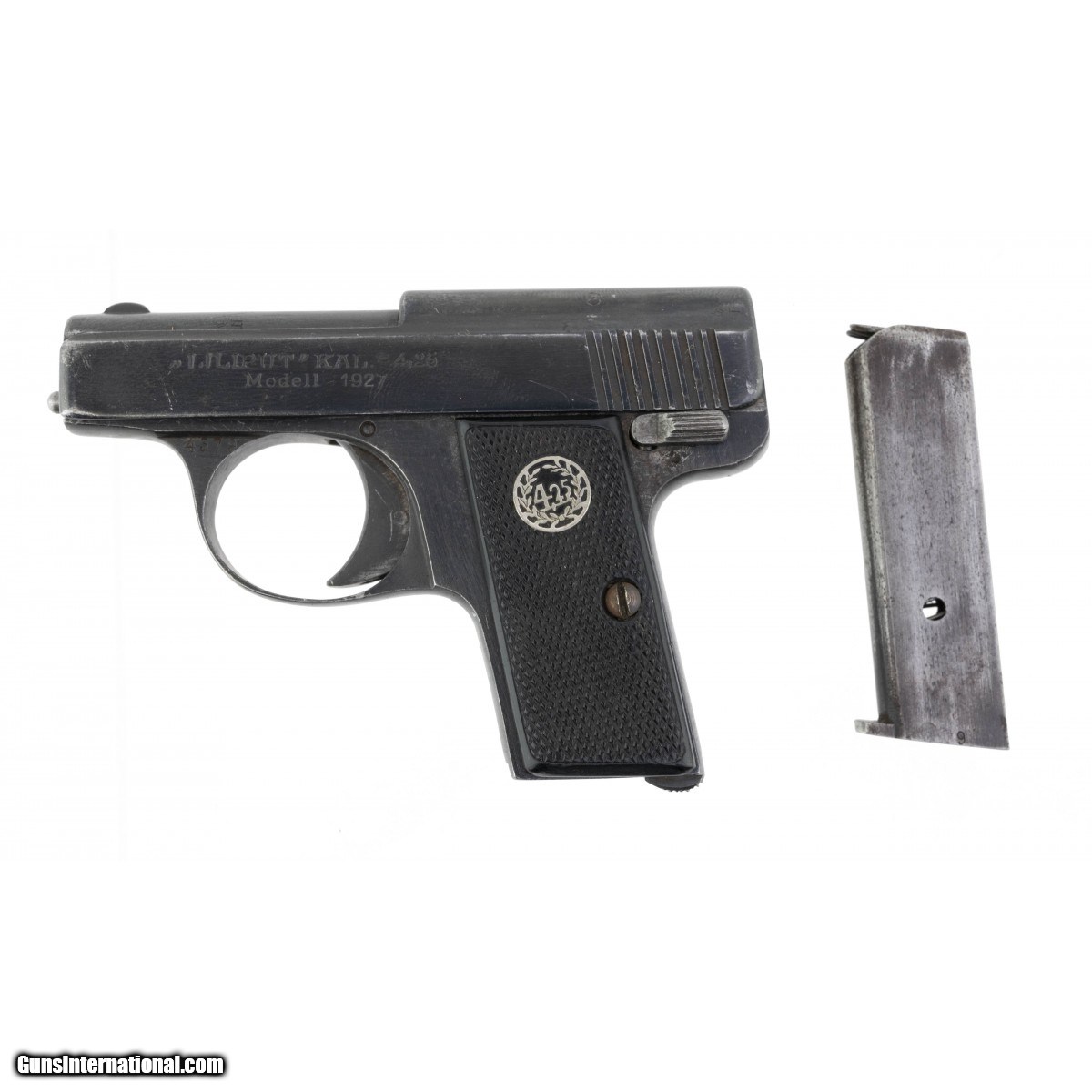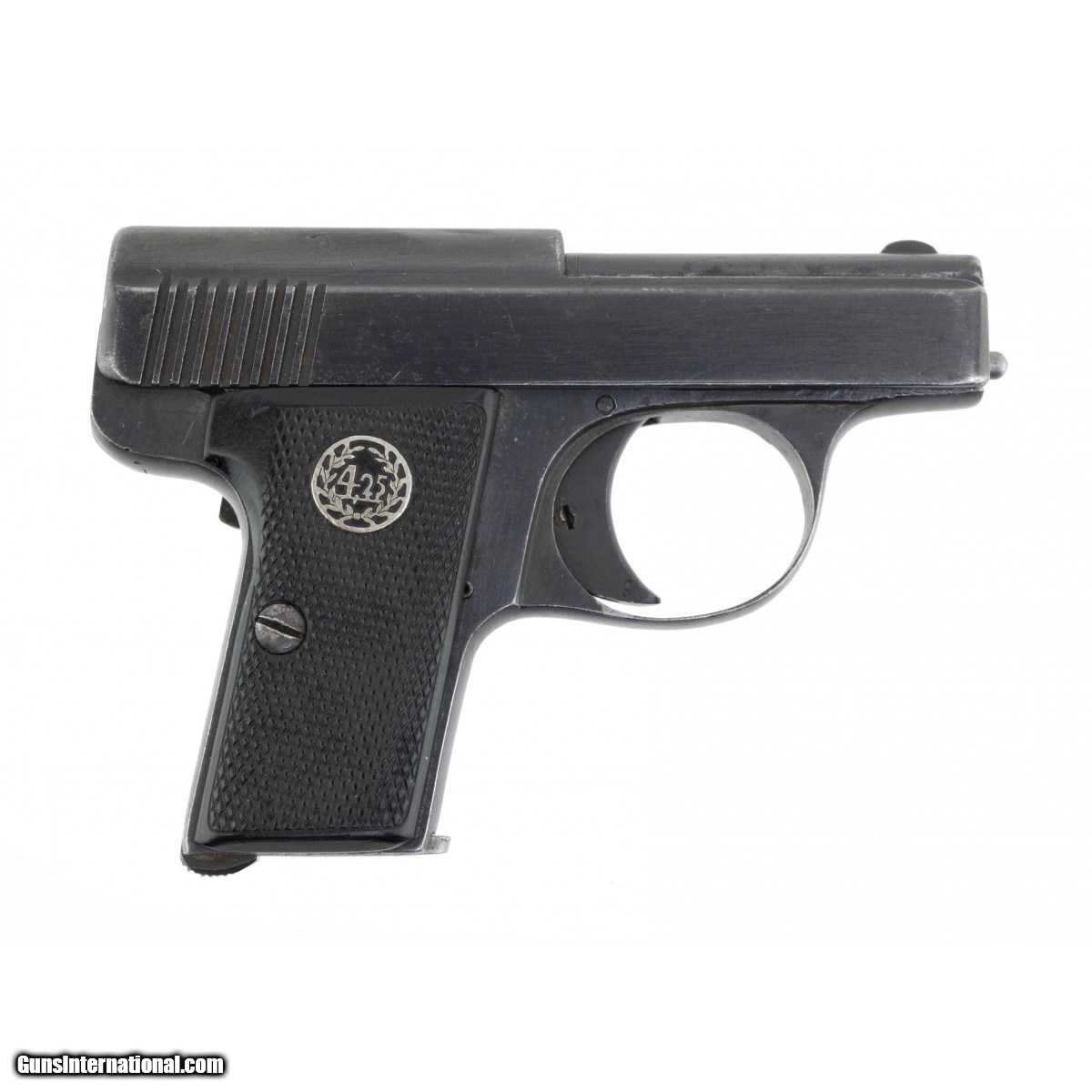 Description: " Rare Liliput Model 1927 4.25mm pistol. Bore is very good. Pistol has 98% blue. The action works perfectly. The grips have a round on both grips with the caliber marking surrounded with an oakleaf wreath. Grips are perfect with no damage. Pistol has the impossible to find original magazine. These rare Liliput pistols are seldom offered on the open market and are usually sold privately from collector to collector. Overall length is 3 inches. Note: this is NOT for .25ACP. These pistols were made by August Menz in Suhl Germany. Next to the Kolibri the Liliput is the smallest automatic pistol! SOLD Curio/Relic: Yes |