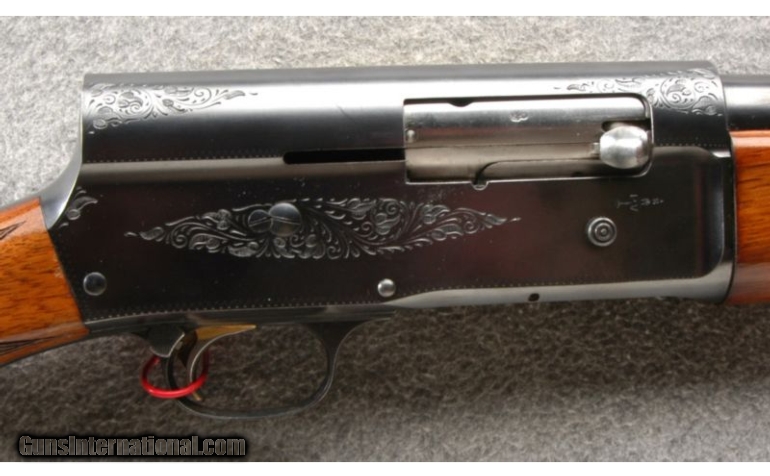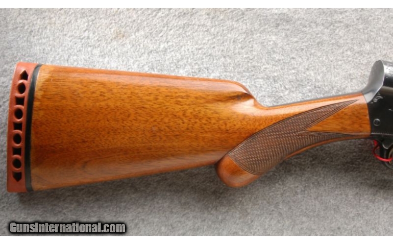 Description: The wood and metal on the Browning A-5 LT is very clean. This shotgun has a 27.5 inch barrel with a MOD choke. The bolt face is clean and the shotgun looks to have been fired very little. SOLD Curio/Relic: Yes Manufacturer: 1954-1955 Caliber Info: 12 Gauge. Chambers: 2 3/4 Inch Semi-auto. Metal Condition: Excellent with a very few marks. Wood Condition: Very good with the pad added. Bore Condition: Like new. Barrels: 27.5 Inch round blue. Triggers: Single gold color with gold wear. Stock: Very nice straight grain walnut with a checkered round knob and a pad added. Stock Dimensions: 13 3/4 Inch LOP field gun. Fore End: Matching checkered walnut with finger grooves. Butt Pad: After market Red Head butt pad. Weight: 7 Lbs 8 Oz. Sights: Single silver color front bead on a ramp. Chokes: Fixed MOD. Item Location: Owatonna, MN |