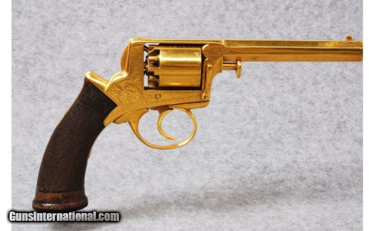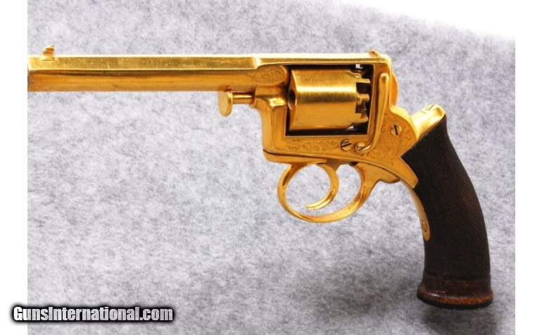 Description: SOLD Caliber Info: .31 Caliber. Metal Condition: Gold plate barrel, cylinder, and frame, bobbed hammer, frame engraving, and pull-out cylinder pin. Wood Condition: Minor mars. Bore Condition: Good. Barrels: 4 1/2" octagon, gold plated barrel. Triggers: Gold pull. Stock: Checkered walnut with a decorative carved butt cap. Sights: Gold windage blade front and fixed, mini-buckhorn rear sight. Item Location: Kansas City, KS |