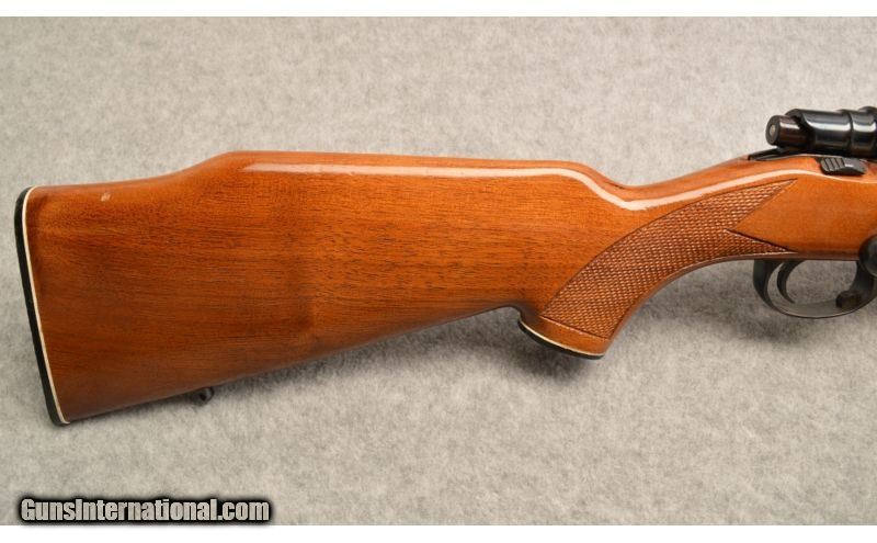Description: SOLD Caliber Info: .270 Winchester Metal Condition: Good Overall with Scattered Scratches and Light Freckling Wood Condition: Scattered, Shallow Compression Marks and Scratches Consistent with Field Use Bore Condition: Bright Barrels: 24 Inches Triggers: Single Stage Stock: Checkered Walnut Monte Carlo Stock Dimensions: 13-7/8" LOP Fore End: Checkered Walnut Butt Pad: Checkered Black Plastic Butt Plate Weight: 7 Lbs. 10 Oz. Sights: Leupold One-Piece Scope Base Item Location: Farmington, UT |