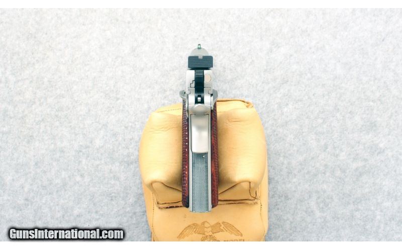 Description: SOLD Caliber Info: .45 Auto. Metal Condition: Excellent. Wood Condition: Excellent. Bore Condition: Excellent. Barrels: 5". Stock: Diamond checkered wood grips. Weight: 38 Ounces. Sights: Fiber optic front sight, and adjusable rear sight. Extras: Includes case, and .22 LR conversion kit in case. Item Location: Richfield, WI |