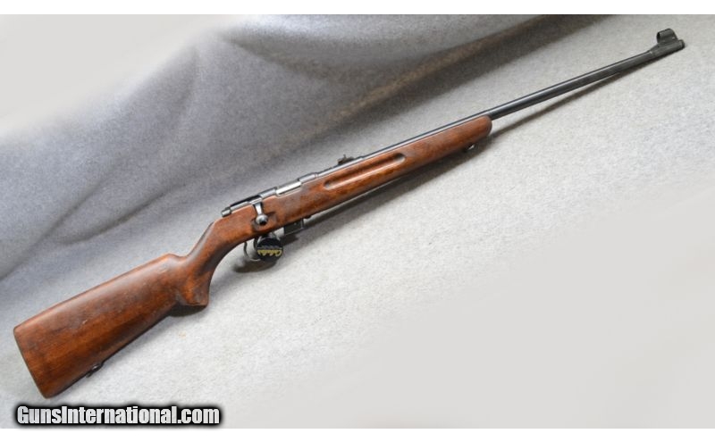Description: SOLD Caliber Info: .22 Long Rifle Metal Condition: Good Wood Condition: Good Bore Condition: Shiny and bright Barrels: 23 Inch Stock: Pistol grip hardwood Stock Dimensions: 14 Inch LOP Butt Pad: Steel plate Weight: 5 lbs -10 oz Sights: Hooded post and express rifle folding leaf open sights. Extras: One magazine total Item Location: Richfield, WI |