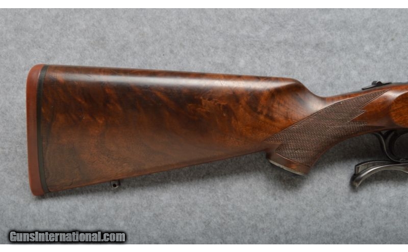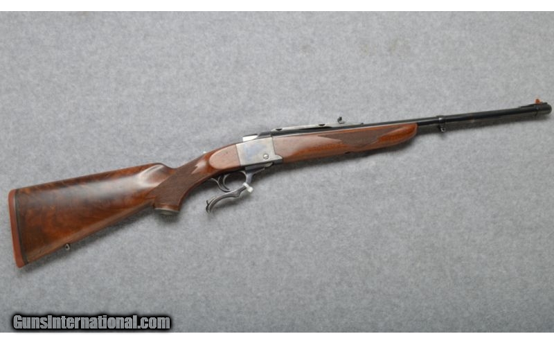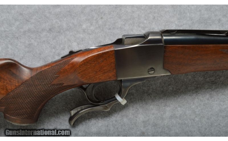 Description: Ruger No. 1 in .45-70 Government. Front sight replaced and marks on bottom of barrel around barrel band. Nice rifle over all. SOLD Caliber Info: .45-70 Government Metal Condition: Excellent Wood Condition: Excellent Bore Condition: Excellent Barrels: 22 inches Stock: Solid with only handling marks Stock Dimensions: LOP 14 inches Fore End: Solid with no cracks or chips Butt Pad: Ruger red rubber Weight: 7 1/4 Lbs Item Location: Fort Mill, SC |
