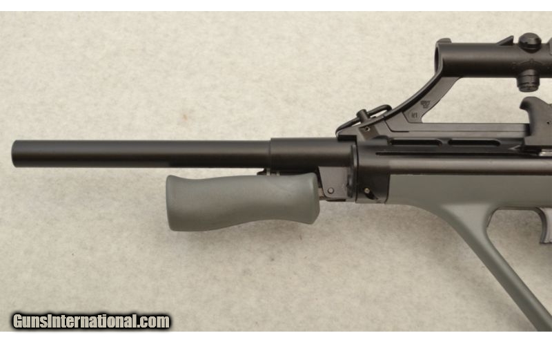 Description: SOLD Manufacturer: 1997 Caliber Info: .223 Remington Metal Condition: Metal is excellent Wood Condition: Synthetic stock is excellent Bore Condition: Bore is excellent Barrels: 20" barrel Triggers: Wide, grooved trigger Stock: Grey synthetic bullpup design Fore End: Folding vertical pistol grip Butt Pad: Solid, firm, black pad Weight: 8 pounds 8 ounces Sights: 3X Swarovski Optic Item Location: Green Bay, WI |