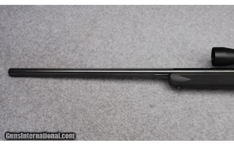 Description: This is a Thompson Center Encore in .300 Winchester Magnum with an extra .50 Caliber Blackpowder barrel. The single shot receiver has a blued finish, showing minimal signs of wear and use. Both barrelshave a blued finish, showing minimal signs of wear and use. The .300 Winchester Magnum barrel comes equipped with a Burris Fullfield II 3-9 scope, and the .50 caliber Blackpowder barrel comes with adjustable iron sights. The furniture is made from synthetic material, showing minor handling marks. SOLD Caliber Info: .300 Winchester Magnum with .50 Blackpowder Barrel Metal Condition: Excellent Bore Condition: Bright and Shiny Barrels: .300 Winchester Magnum: 28", .50 Blackpowder: 26 Triggers: Single Stock: Black synthetic thumbhole Stock Dimensions: LOP: 14 1/2 Fore End: Black synthetic Butt Pad: Rubber Weight: 9 1/4 lb Sights: .300 Winchester Magnum barrel equipped with Burris 3-9 Fullfield, .50 BP with adjustable Iron Sights Extras: .50 Caliber Blackpowder Barrel Item Location: Reno, NV |