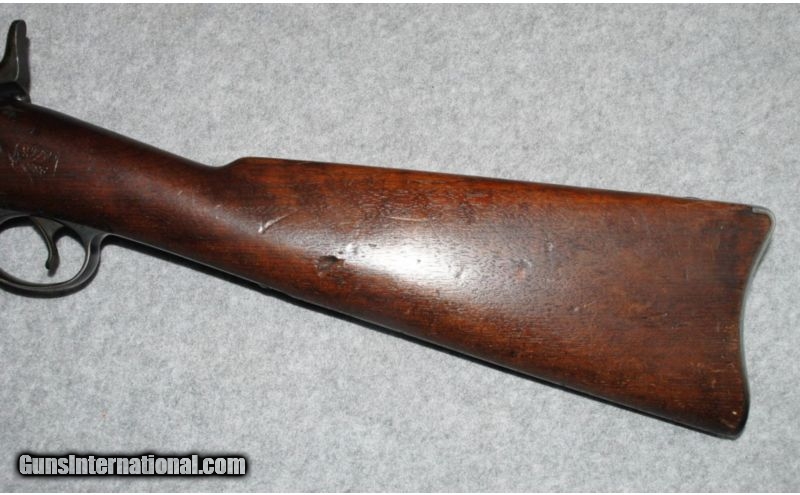 Description: ~ U. S. Springfield 1884 Trapdoor .45 ~ SOLD Manufacturer: 1884 Caliber Info: .45 Metal Condition: Light small rust spots Wood Condition: Dings scratches handling marks. Bore Condition: Good Barrels: 32 Triggers: Grooved trigger. Stock: Walnut Stock Dimensions: LOP: 13 3/8 Fore End: All three barrel bands. Butt Pad: Issue steel butt plate. Weight: 9 1/2 Lbs. Sights: Late style ladderbar adjustable rear/Blade front. Item Location: Columbus, OH |