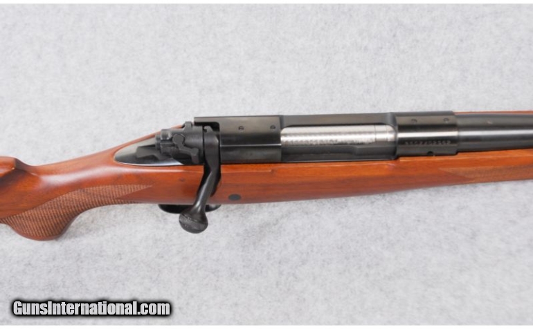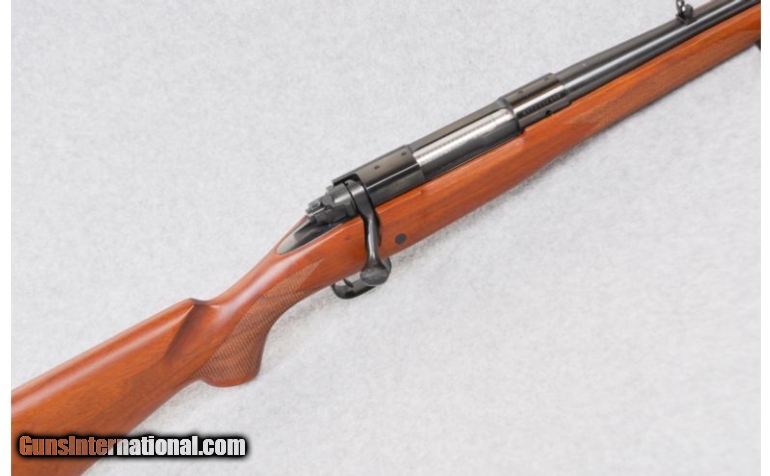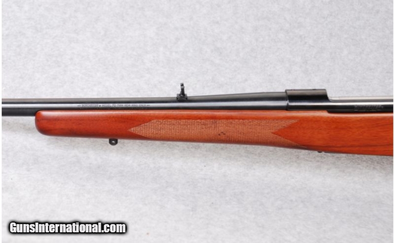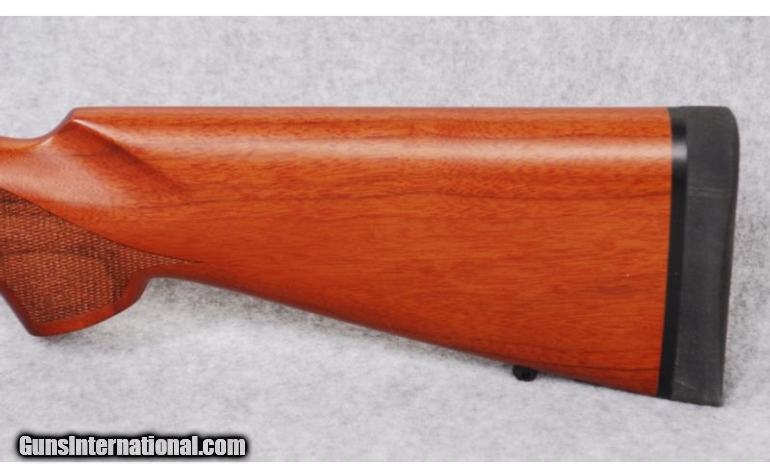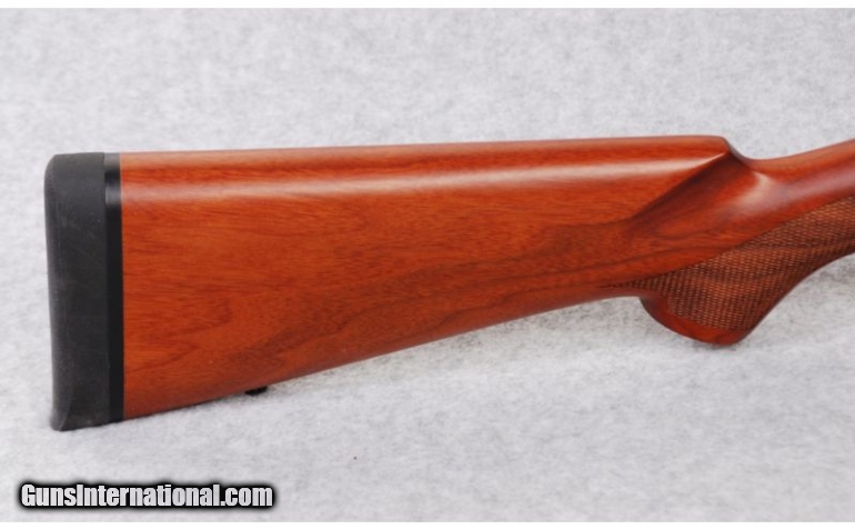 Description: SOLD Caliber Info: 7mm Remington Mag. Metal Condition: Blued receiver, claw extractor, three-position right-hand safety, cocking indicator, steel floor plate, and drilled and tapped receiver. Wood Condition: New. Bore Condition: New. Barrels: 24" barrel. Triggers: Smooth surface trigger. Stock: Reddish walnut with an oil finish, checkered pistol grip, and sling stud. Stock Dimensions: LOP: 13 5/8". Fore End: Checkered fore end and sling stud. Butt Pad: 1" soft rubber pad. Sights: Ramped and hooded brass dot blade front and a single folding leaf rear sight with a white diamond. Extras: From Cabela's exclusive collection. Item Location: Billings, MT |