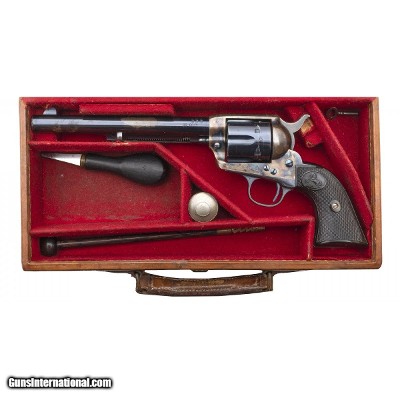 Features silver Wexell and DeGress grips in beautiful condition. Gun has most original nickel remaining and is nicely engraved. This comes from the Dr. Robert Cox Collection. Nicely done case with bra