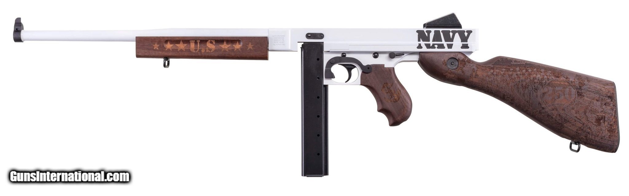 Description: Guns Listing ID: 586747 Auto-Ordnance Thompson M1 Carbine TM1C5 Rifle .45 ACP 16.5\" Barrel 30 Round Semi-Auto Arctic White Cerakote Engraved Walnut The Auto-Ordnance Thompson M1 Carbine TM1C5 Rifle is a distinguished semi-automatic firearm, crafted in .45 ACP. It features a 16.5-inch barrel and an Arctic White Cerakote finish, paired with engraved walnut furniture. This carbine is designed to honor historical military tradition, combining authentic design elements with modern craftsmanship. Chambered in .45 ACP 16.5-inch smooth barrel Arctic White Cerakote finish The Thompson M1 Carbine is known for its reliability and historical significance, making it a sought-after piece for collectors and firearms enthusiasts. With its walnut stock and foregrip, this model presents a classic aesthetic while maintaining modern functionality. Manufacturer: AUTO-ORDNANCE Model: M1 CARBINE Caliber Info: .45 ACP Condition: new Barrels: 16.5" BARREL Action: SEMI AUTOMATIC Finish: BLACK AND WHITE Weight: 11.5 LBS. Price: $2,399.99 Contact Seller |