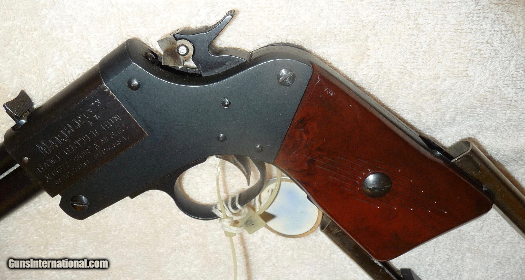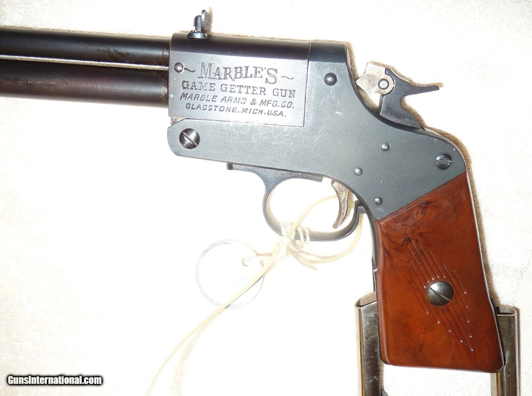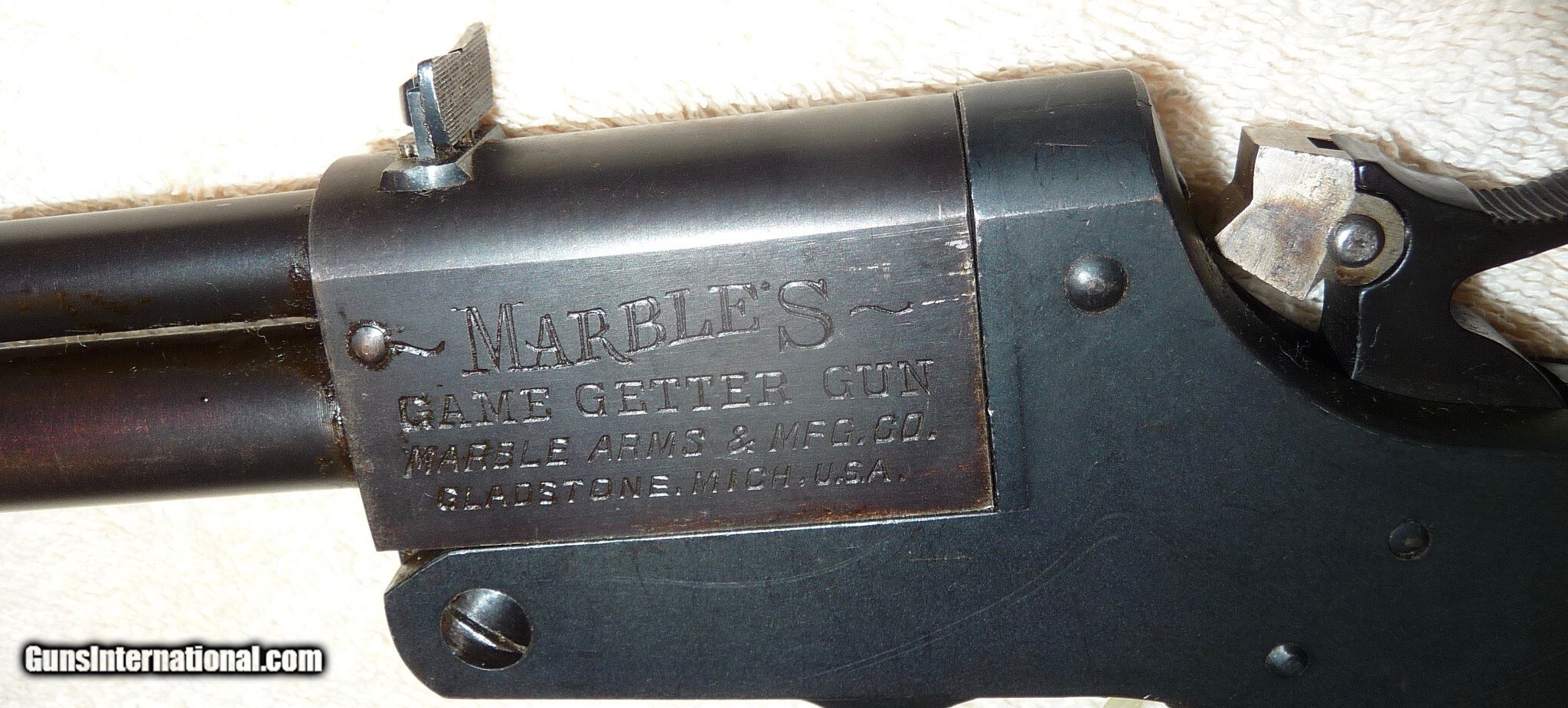 Description: Absolutely original, untouched and from a grand estate collection. About as nice as you are going to find! Retains about 97% original blue finish, bores excellent, tight, seems to function as it should. Serial No, 17,xxx. 22 over 410. Classified as Any Other Weapon "AOW" and is registered with the ATF on a Form 4. This weapon must be transferred on a Form 4 and has a $5. tax transfer fee. Please familiarize yourself with ATF Form 4 and understand what is involved. Shipping Insured in the lower 48 states will be $60.00 If you ever wanted a Marble Game Getter this is about as good as it gets!! SAFETY NOTICE: Buyer is solely responsible for determining that a used gun is safe to shoot! The firearms offered have not been test fired! They have been given a visual inspection for selling purposes only. and are sold as a collectible item only! We make no guarantee that it is safe to shoot or that it will function correctly if it is fired. It is a requirement that every used firearm (including this one) be inspected and approved by a qualified gunsmith before firing! By purchasing, the buyer agrees to hold seller harmless against damages, injury, or death caused by defective merchandise. Inspection is a no-firing, no disassembly, 3-day (M-F) time frame to cover any Serious issue that was NOT noted in the written description or, Not shown in the listing photos of the item. No returns for buyer's remorse or a change of mind. No returns based on on your evaluation of condition. You evaluate condition from the pictures Before you purchase! Inspection period begins at time of delivery to your dealer and, it is your responsibility to inspect the gun in this time frame. Please ask all questions BEFORE purchasing. Curio/Relic: Yes Rifle Caliber: .22 Long Shotgun Gauge: .410 Gauge Manufacturer: Marble Model: Game Getter Serial Number: 17,xxx Barrel Length: 15 Condition: exc. 97% Metal Condition: Exc Bore Condition: Exc Price: $2,895.00 Contact Seller |
