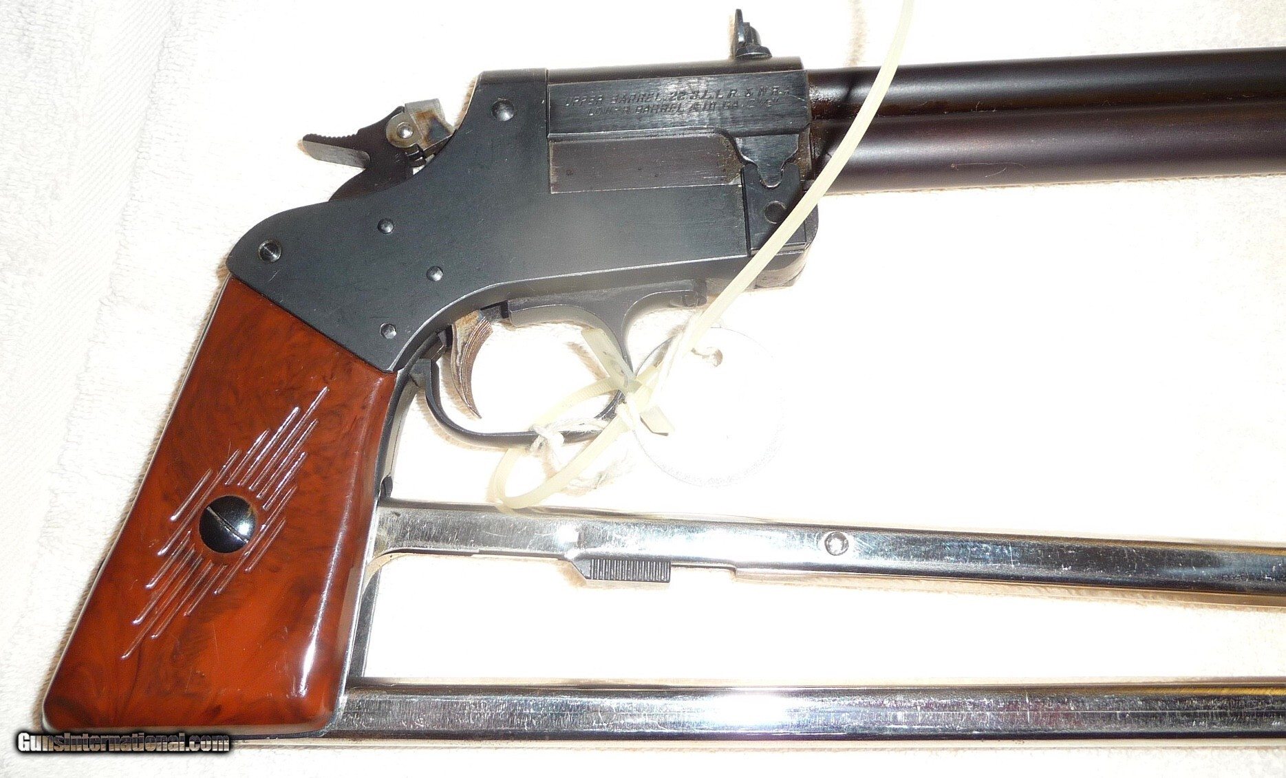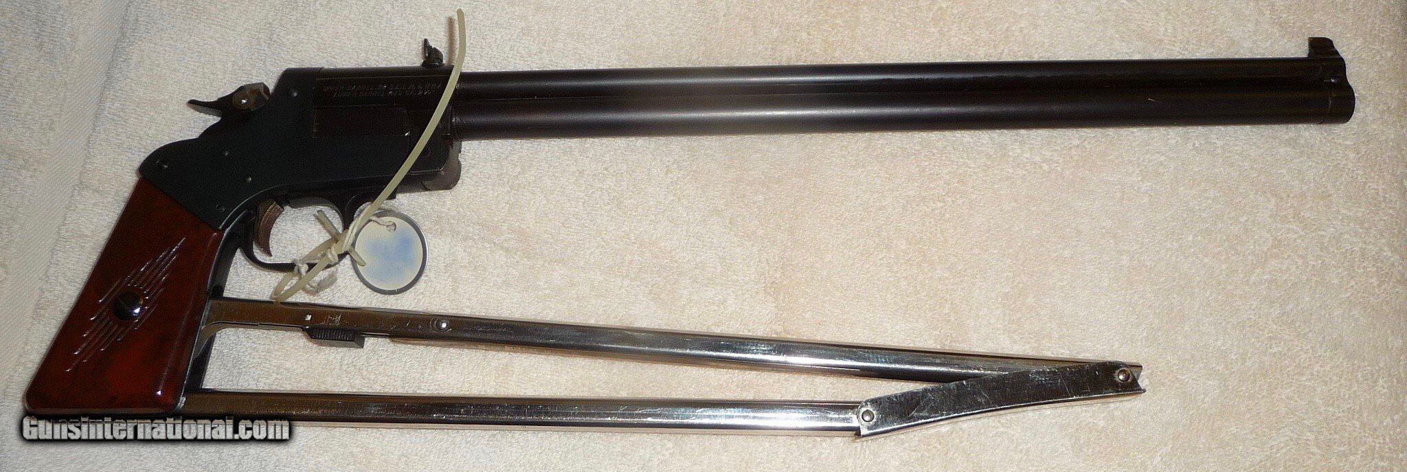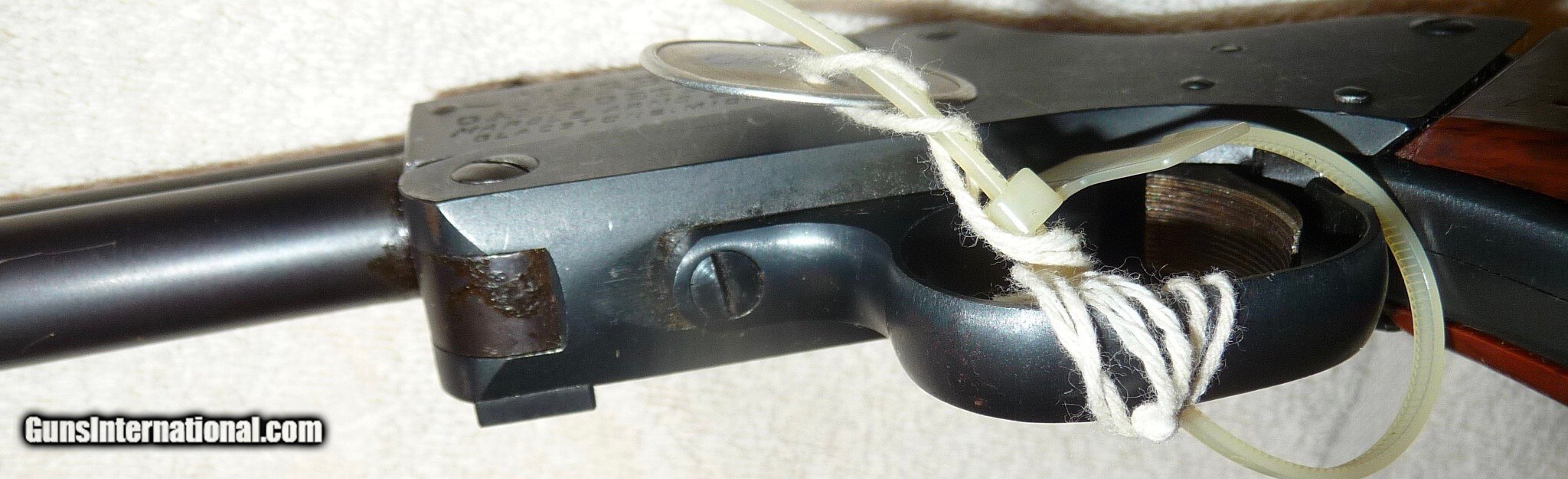 Description: Absolutely original, untouched and from a grand estate collection. About as nice as you are going to find! Retains about 97% original blue finish, bores excellent, tight, seems to function as it should. Serial No, 17,xxx. 22 over 410. Classified as Any Other Weapon "AOW" and is registered with the ATF on a Form 4. This weapon must be transferred on a Form 4 and has a $5. tax transfer fee. Please familiarize yourself with ATF Form 4 and understand what is involved. Shipping Insured in the lower 48 states will be $60.00 If you ever wanted a Marble Game Getter this is about as good as it gets!! SAFETY NOTICE: Buyer is solely responsible for determining that a used gun is safe to shoot! The firearms offered have not been test fired! They have been given a visual inspection for selling purposes only. and are sold as a collectible item only! We make no guarantee that it is safe to shoot or that it will function correctly if it is fired. It is a requirement that every used firearm (including this one) be inspected and approved by a qualified gunsmith before firing! By purchasing, the buyer agrees to hold seller harmless against damages, injury, or death caused by defective merchandise. Inspection is a no-firing, no disassembly, 3-day (M-F) time frame to cover any Serious issue that was NOT noted in the written description or, Not shown in the listing photos of the item. No returns for buyer's remorse or a change of mind. No returns based on on your evaluation of condition. You evaluate condition from the pictures Before you purchase! Inspection period begins at time of delivery to your dealer and, it is your responsibility to inspect the gun in this time frame. Please ask all questions BEFORE purchasing. Curio/Relic: Yes Rifle Caliber: .22 Long Shotgun Gauge: .410 Gauge Manufacturer: Marble Model: Game Getter Serial Number: 17,xxx Barrel Length: 15 Condition: exc. 97% Metal Condition: Exc Bore Condition: Exc Price: $2,895.00 Contact Seller |