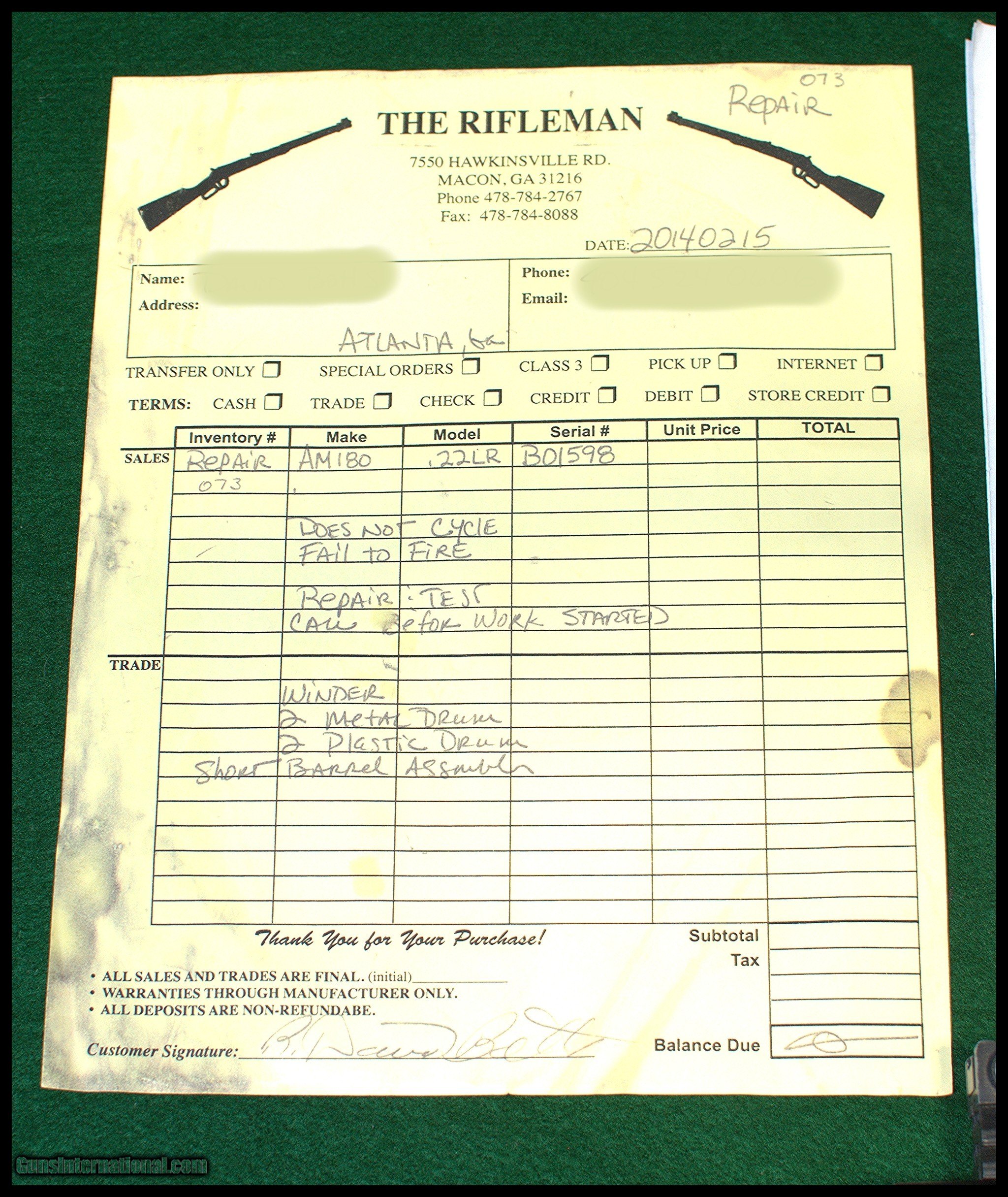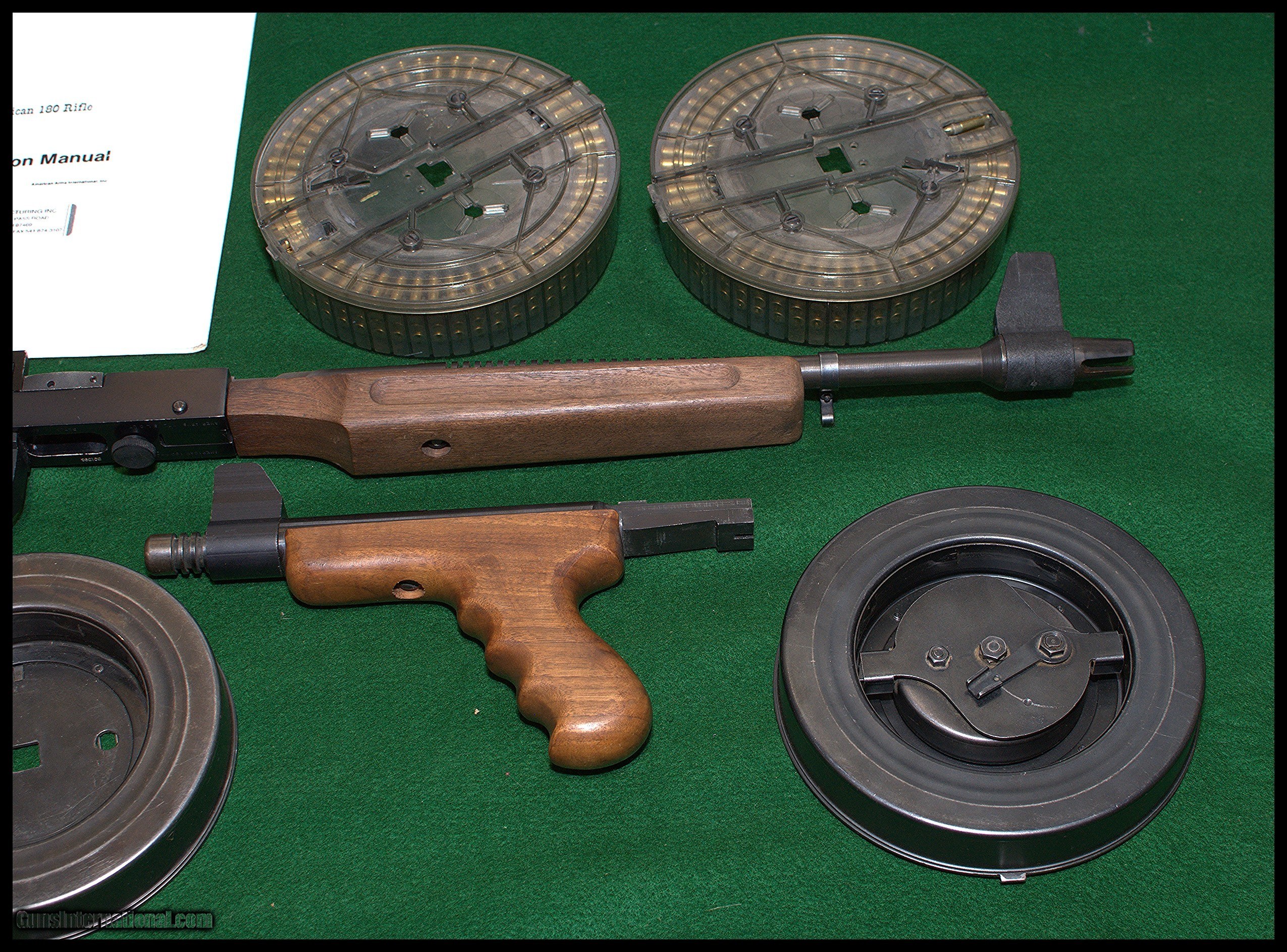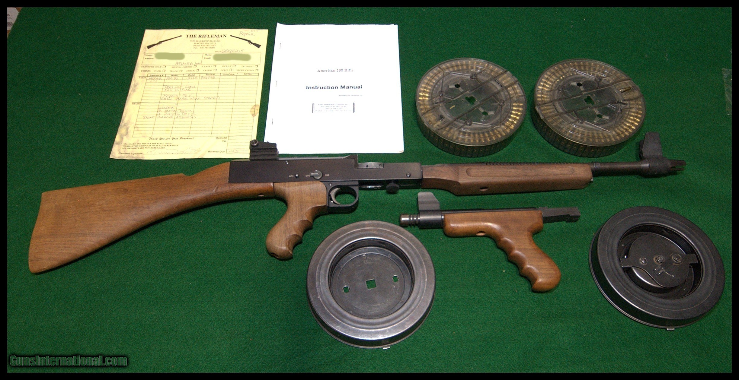 Description: American 180 .22 lr machine gun. This package includes two barrel lengths, two polymer 275 round drum magazines and two 165 round steel drum magazines with winder. This example is in excellent condition and has had the reliability upgrade work done on it (invoice for work shown below) The most affordable select fire rifle to shoot! Rifle Caliber: .22 Long Rifle Price: $19,000.00 Contact Seller |