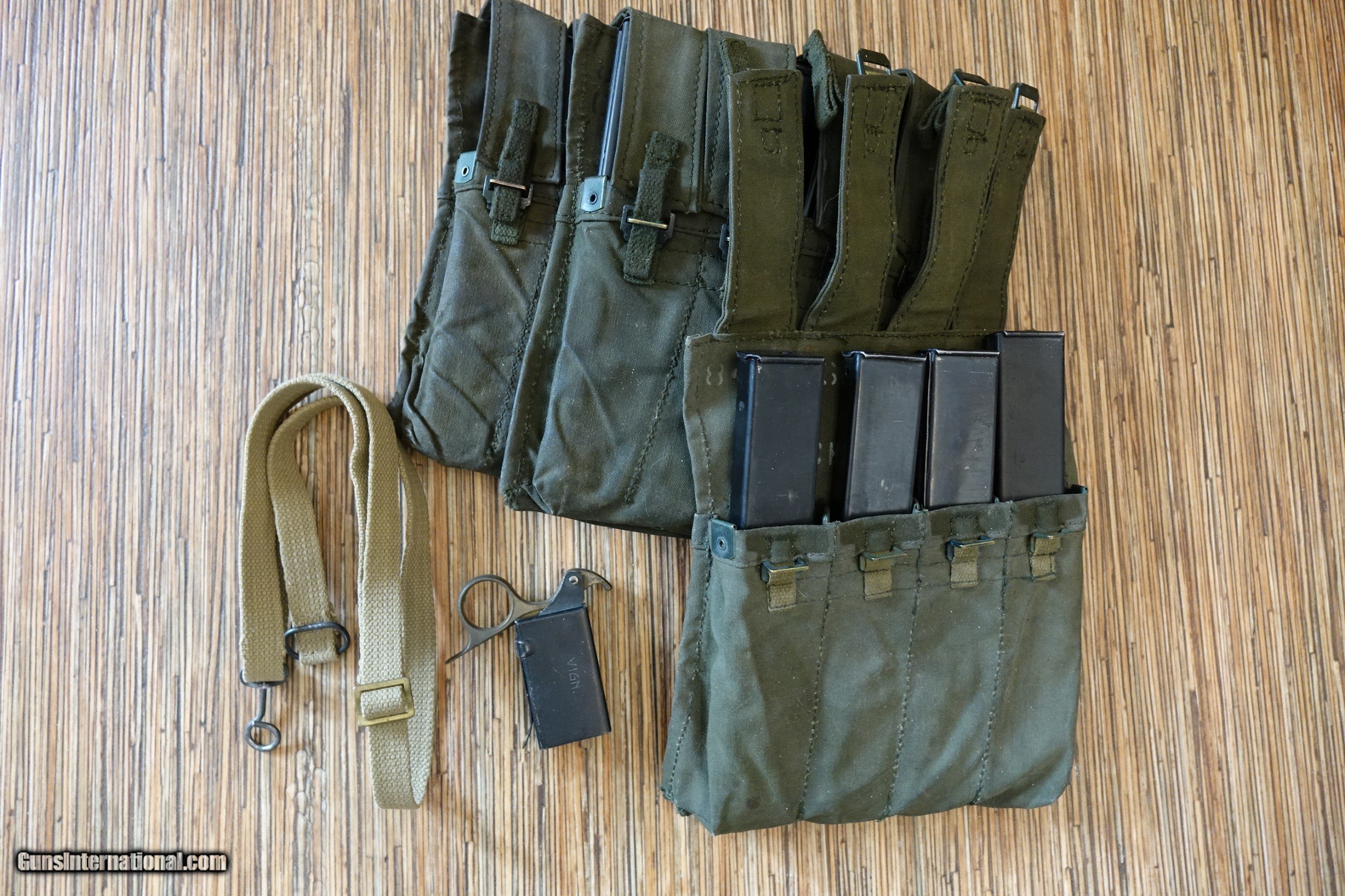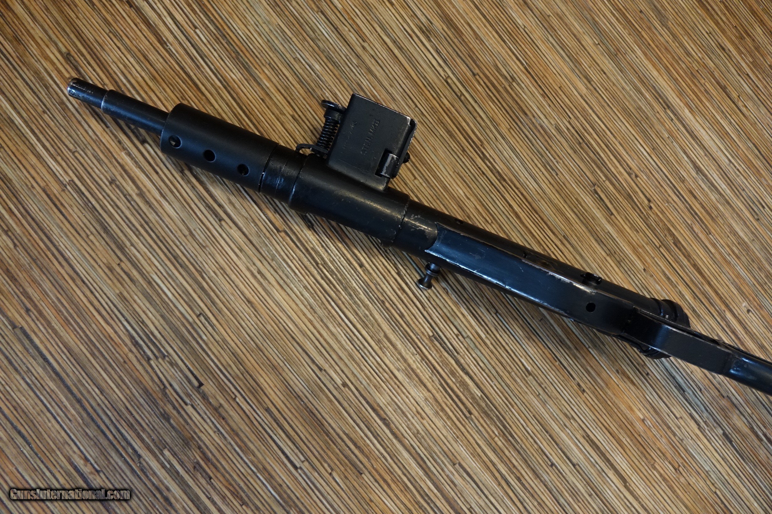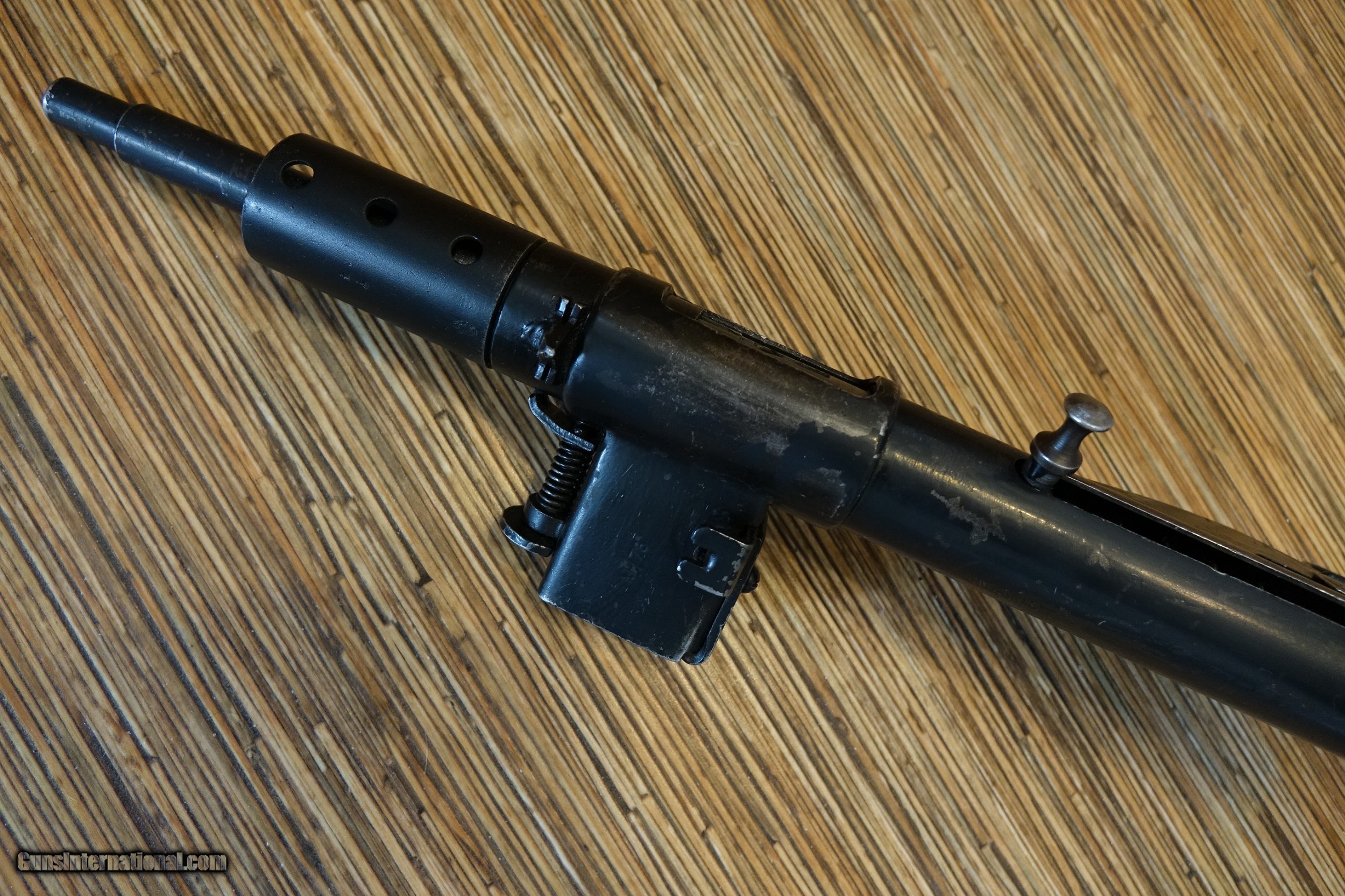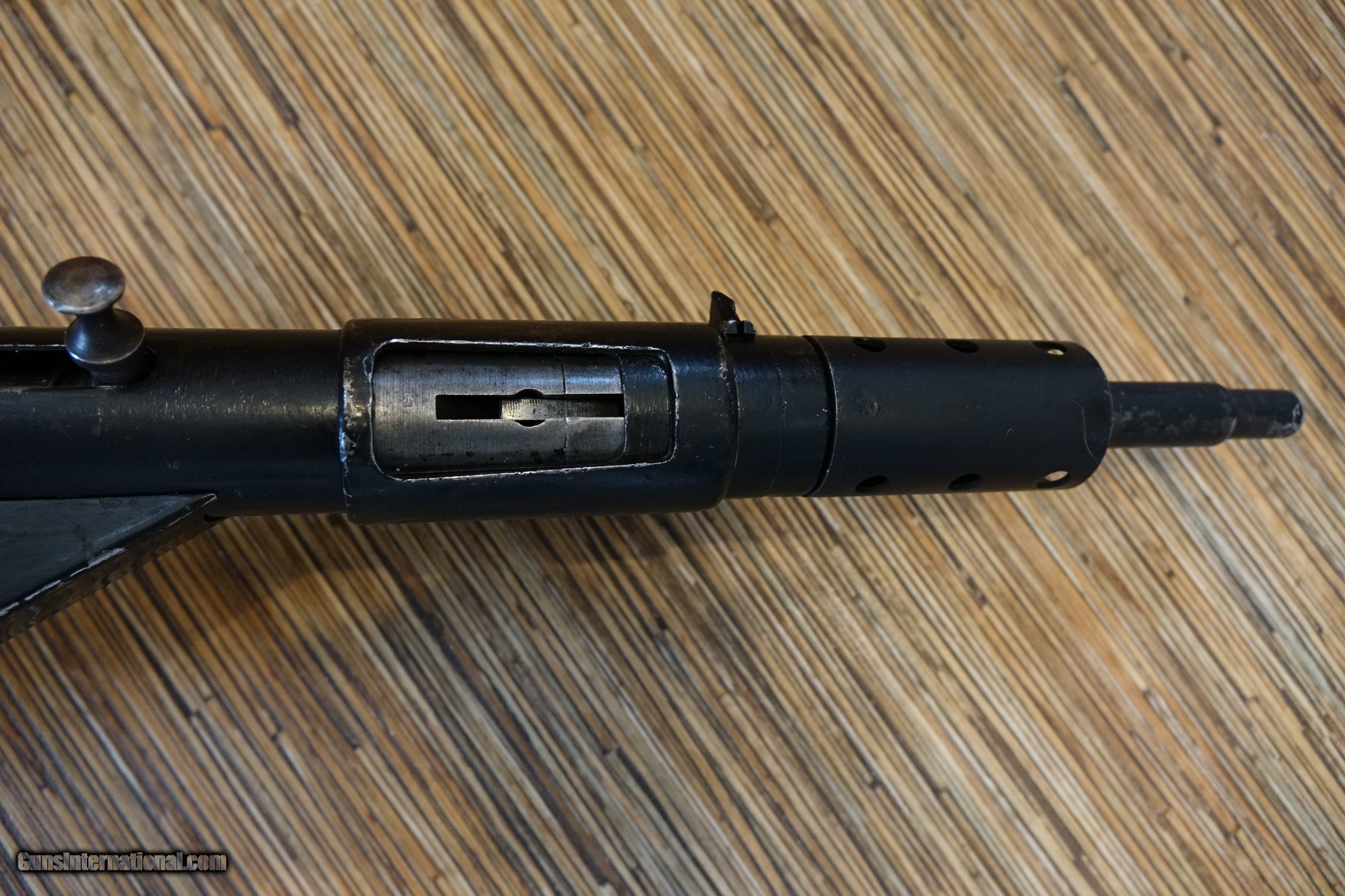 Description: SALE PENDING I aquired this gun from a friend and fellow gun collector. He was a WW II veteran, and served with the 11th Airborne from 1944 to 1946 as a First Leutenant. This was one of his war trophies. (With supporting documentation) Gun works perfectly and comes with a complete spare parts kit with spare barrel, sling, loading tool, three magazine pouches and fifteen magazines. Original finish with fiaking over paint. Not a remanufacutred tube gun! This is a all original WWII gun! (NFA RULES APPLY!) SOLD Curio/Relic: Yes |