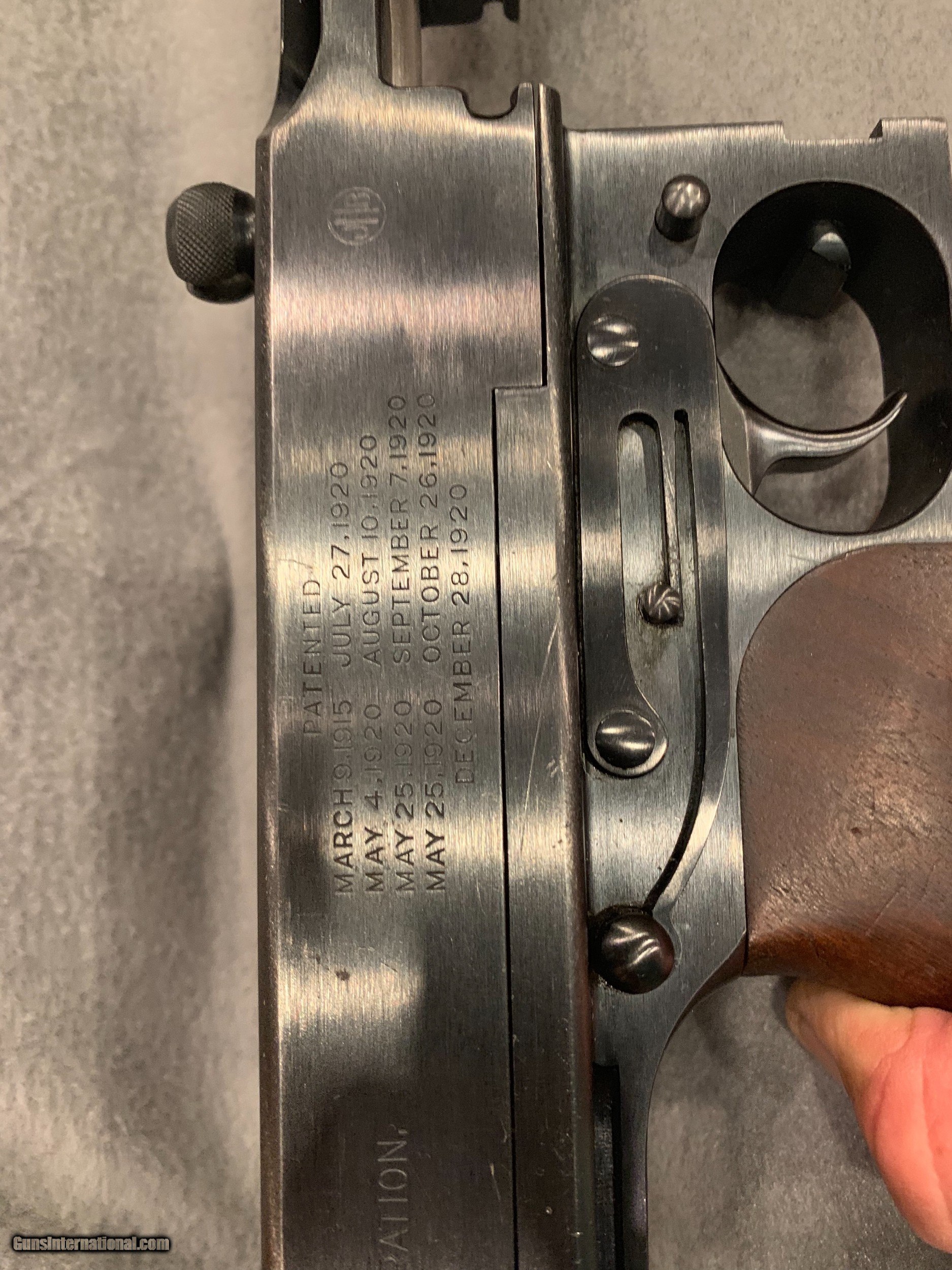 Description: 1921 colt tommy gun with FBI case 4 clips,50 round type L drum,cleaning brushes,and original swetnam FBI case very nice forum 4 all NFA rules apply SOLD |