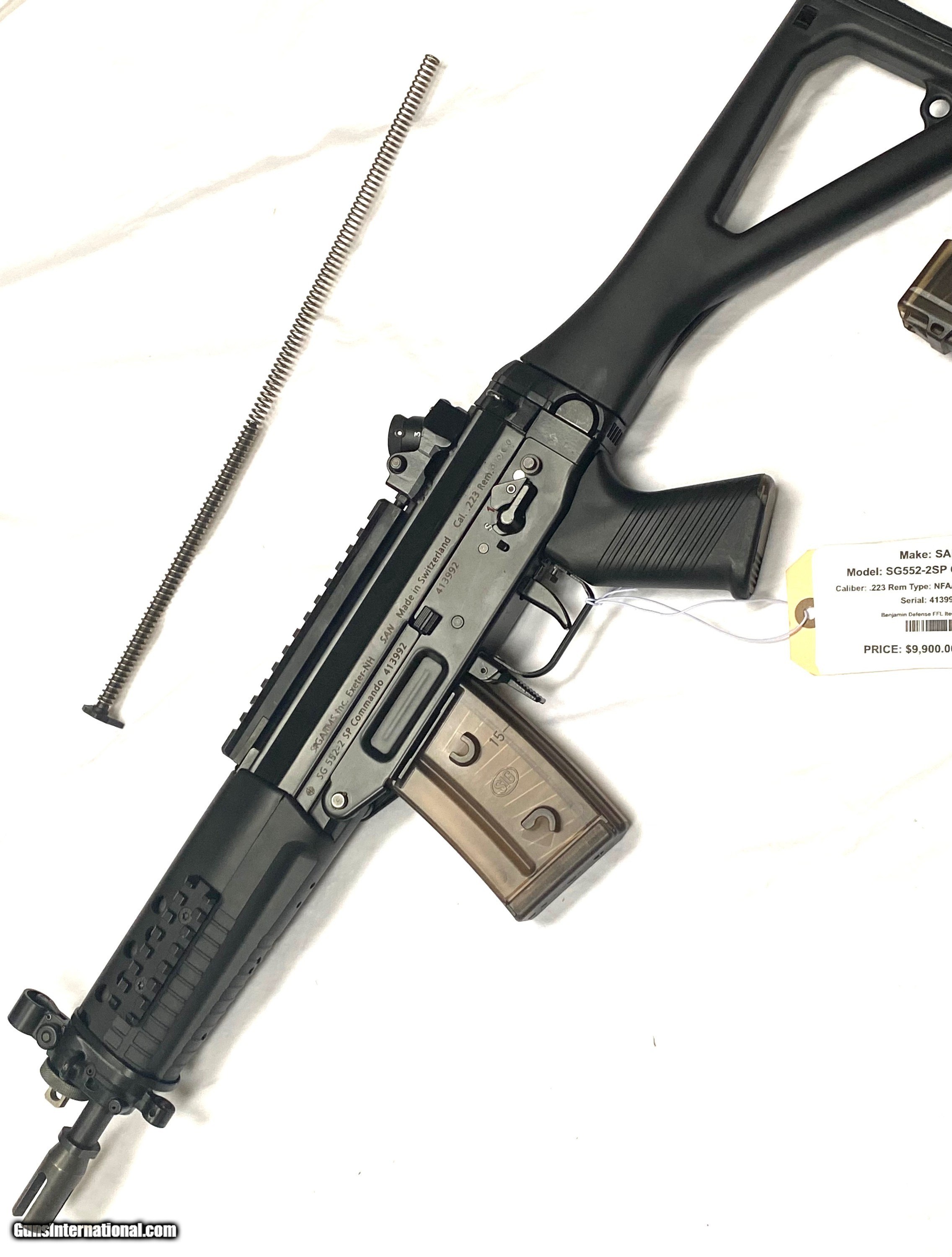 Description: Rare and beautiful Swiss Sig SG552-2SP Commando in .223/5.56mm. Semi auto short barrel rifle (SBR). LE Import. Comes with a 20 round magazine, 30 round magazine and spare recoil rod and spring. Fully transferable. Quick EForm 3 transfer your local FFL/Class 3 dealer. THIS IS A NFA REGISTERED SHORT BARREL RIFLE (SBR) and requires ATF approval for transfer. Do not buy if you do not understand how the NFA process works. Contact your local gun shop before purchasing. SOLD Rifle Caliber: 5.56x45mm NATO Manufacturer: Sig Model: SG 552-2SP Commando |