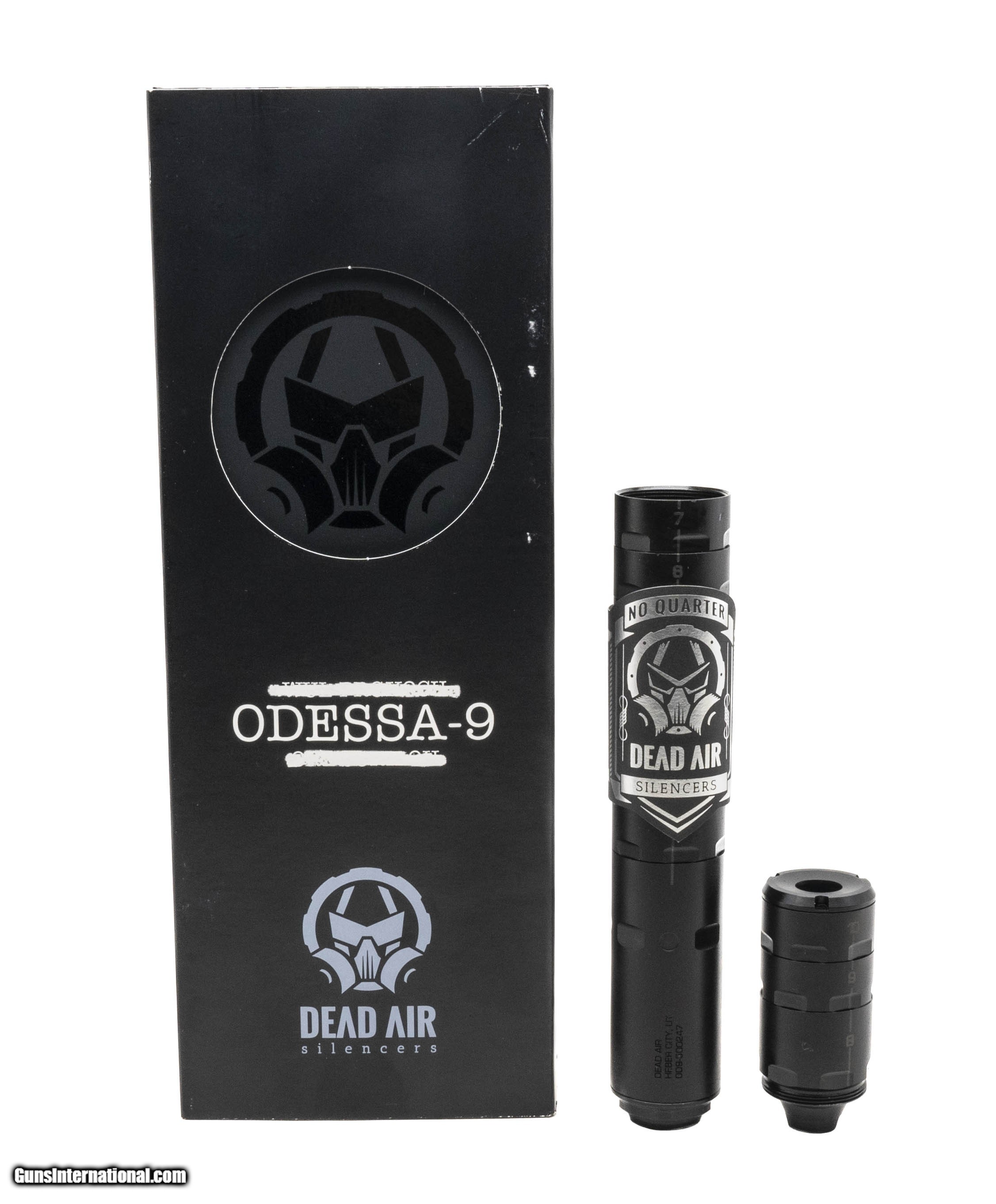 Description: "Dead Air Odessa-9 Silencer 9mm Suppressor. Overall length is 8.25"" with Piston and 7.75"" Without Pistol, 1.1"" in diameter, and weights 10.1/7.4 Oz with and without piston/springs. New. UPC: 810128160186. (CLASS III ITEM)(ALL NFA RULES APPLY) (STOCK PHOTO) SOLD |