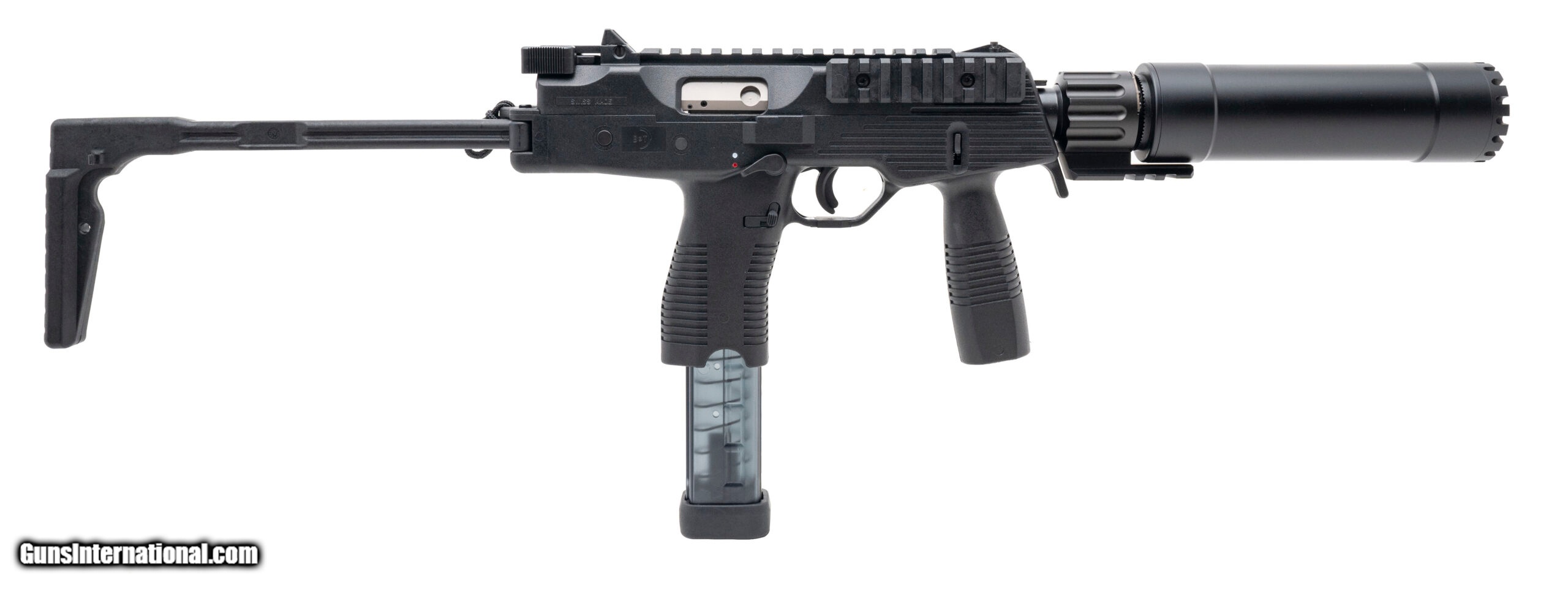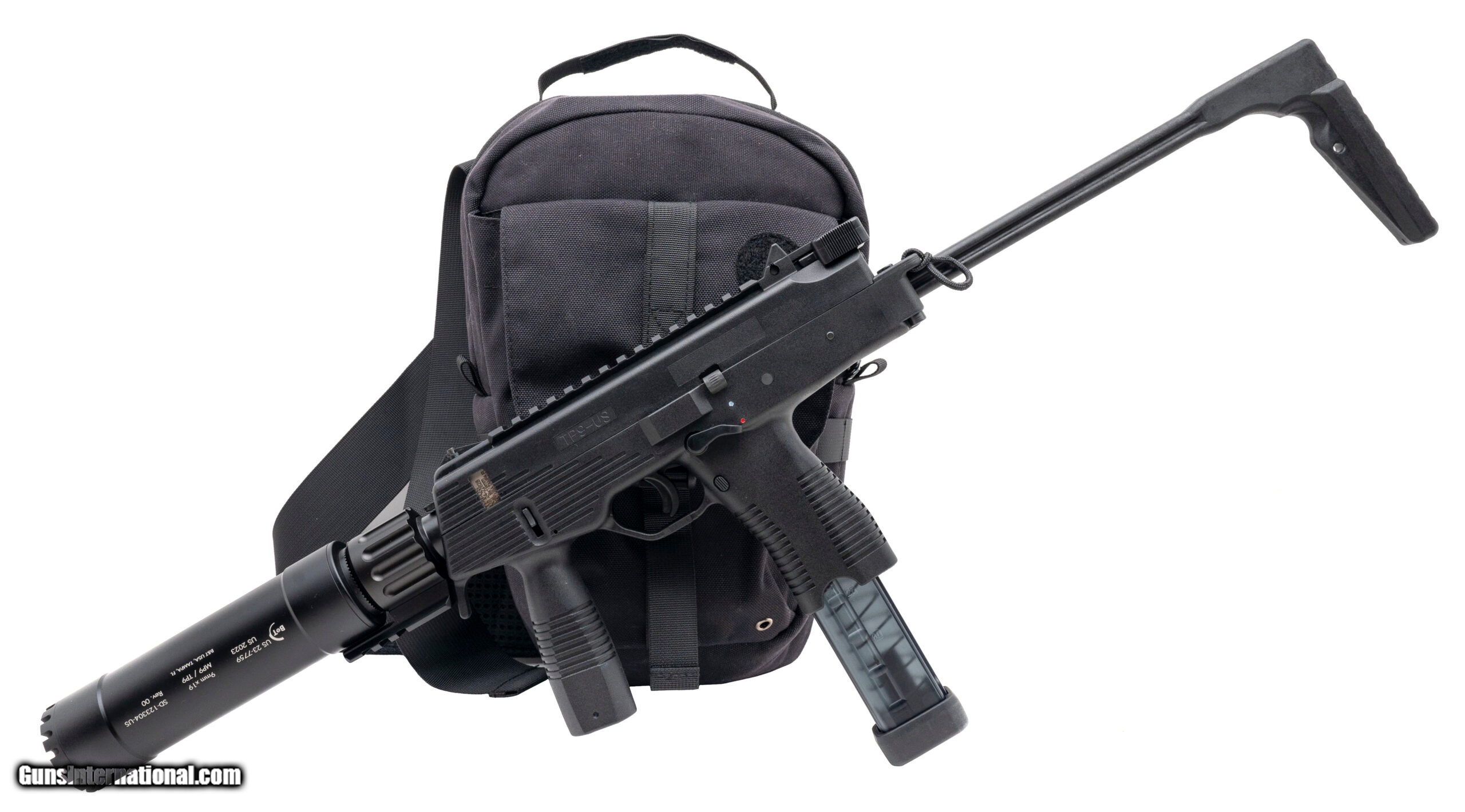 Description: "Tactical Short Barrel Rifle with a 5.1"" Barrel, Black Finish, Polymer Frame w/ Integrated Vertical Grip, Folding Stock. 1-30rd Magazine. B&T TP9 Suppressor 9mm. Overall Length of 8.11"", Diameter of 2"" and Weighs 17 Oz. All NFA Items Require a Tax Stamp. Comes with Carry Bag. NEW. UPC: 866955000362 (CLASS III ITEM)(ALL NFA RULES APPLY) (STOCK PHOTO) SOLD |