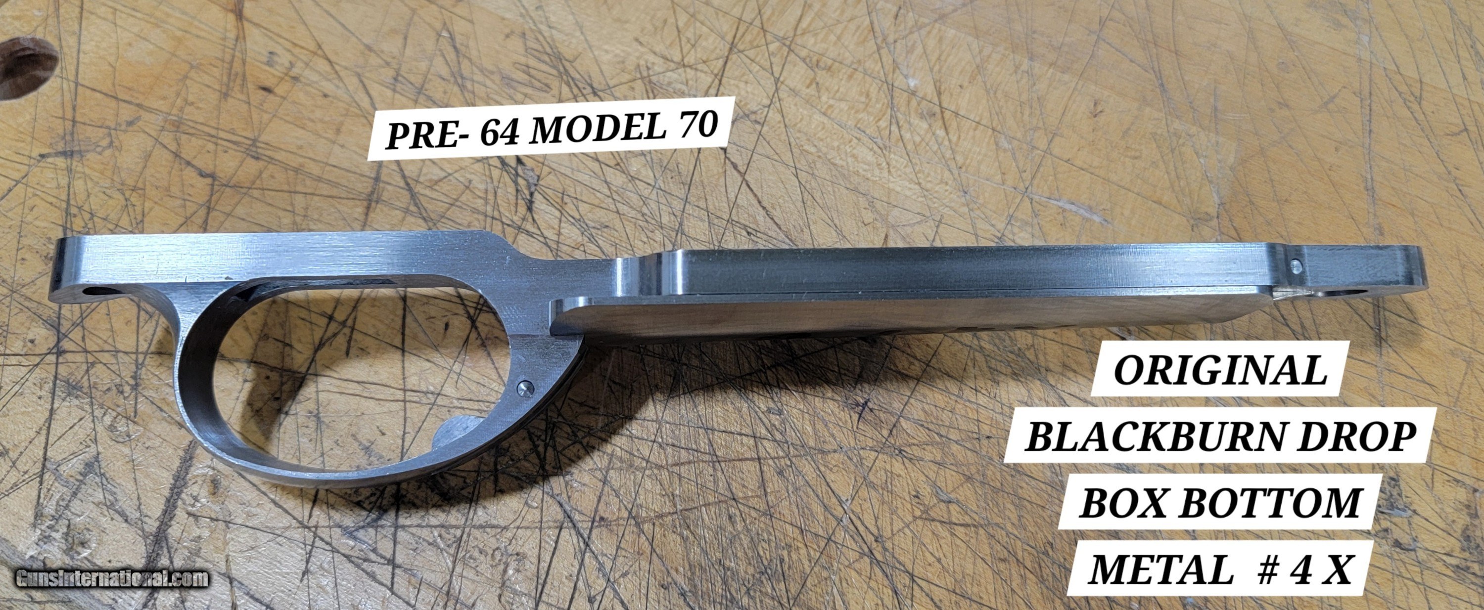 Description: Original Blackburn bottom metal. This piece is for a pr-64 Model 70 Winchester. This is a deep drop box for extra 416 Remington or similar cartridges. Great quality. New/Old stock. $395. Well below current Swift/Blackburn cost ! Thank you, Steve SOLD |