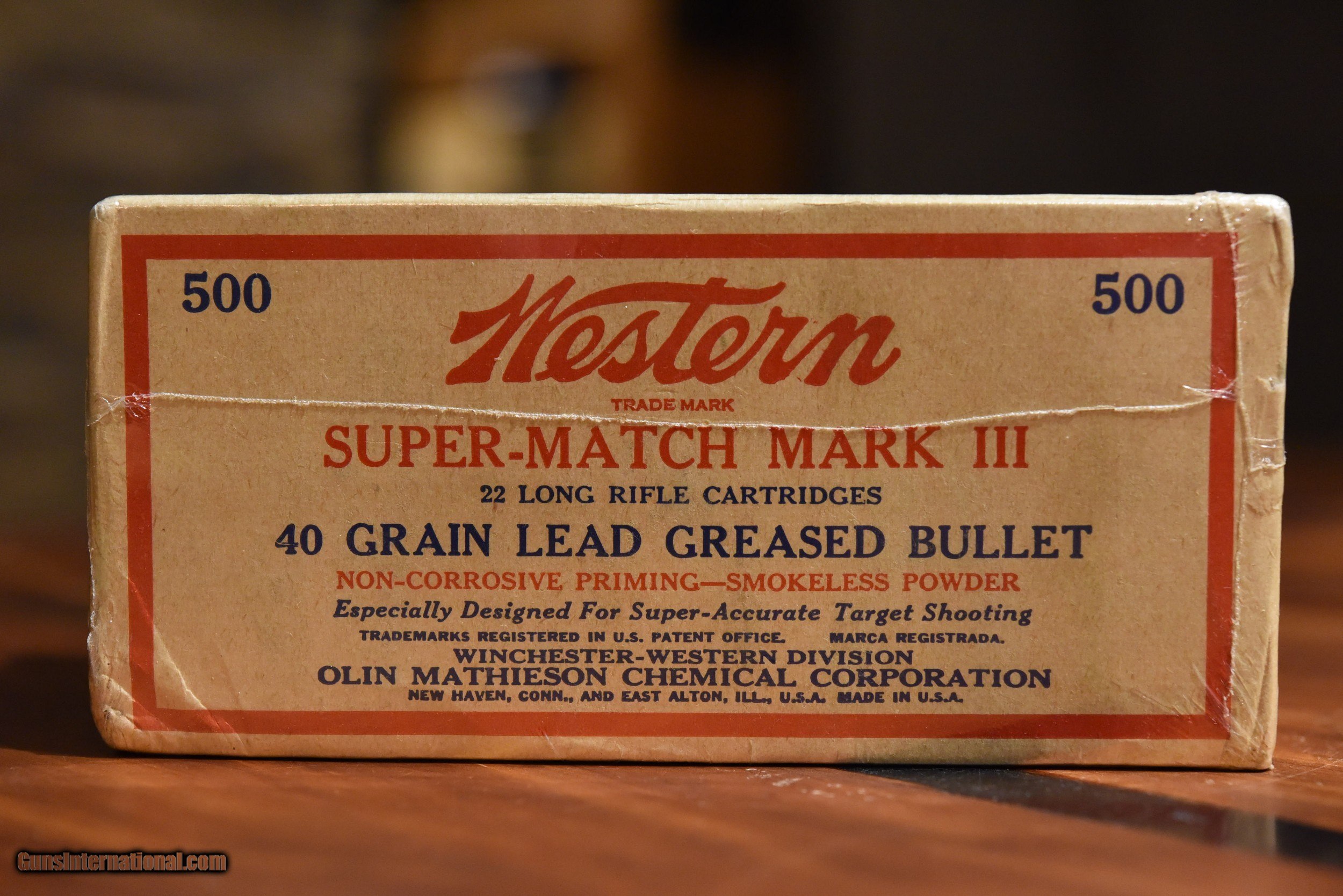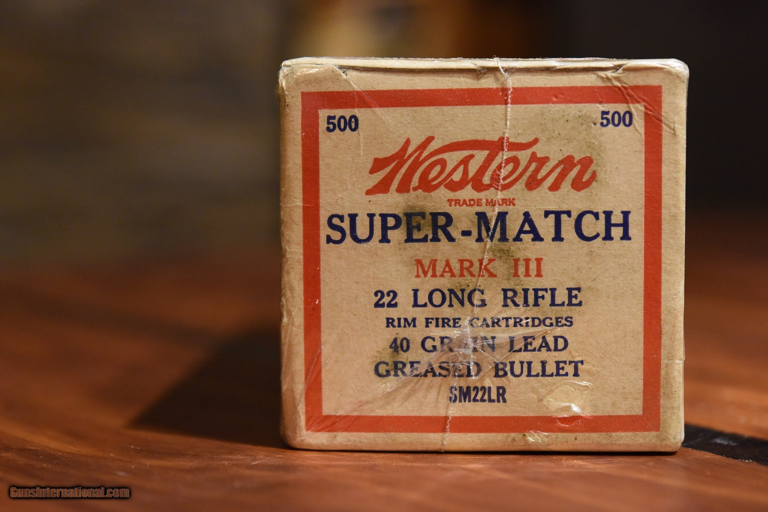 Description: Another rarely seen brick of Western SUPER-MATCH MARK III 22 Long Rifle that is full and correct and shrink wrapped ready to display. SOLD |