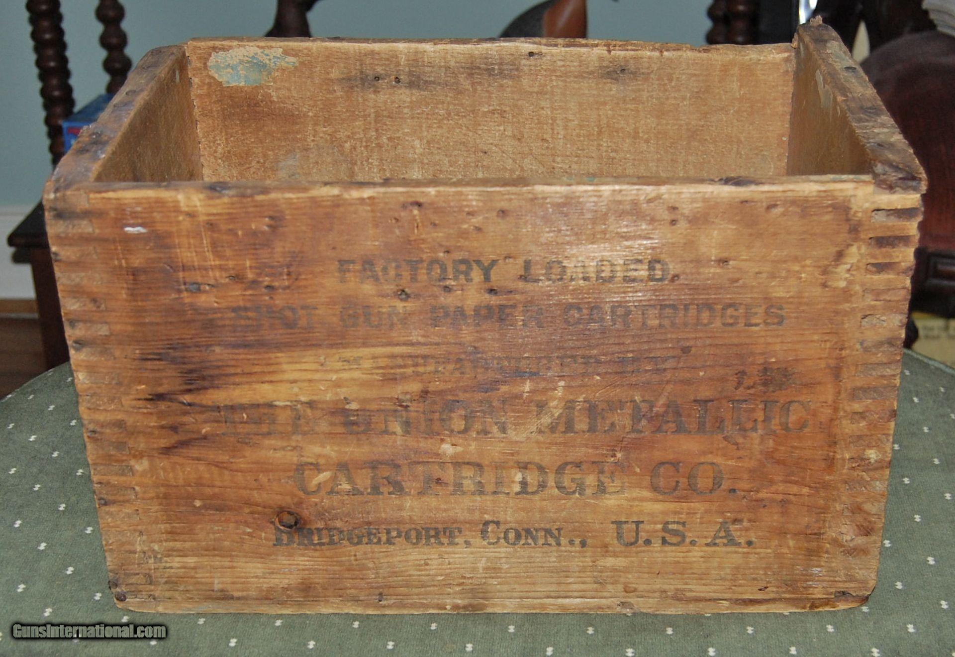 Description: A very old UMC New Club 12 gauge wooden shotshell box circa 1900.This box has the old style dovetailed corner construction.It is very solid and still has good lettering.The New Club shells were very popular at the turn of the century but very few of the wood boxes survive today.Most went into fireplaces and wood stoves.this is a classic addition to your office,den,or gun room. SOLD |