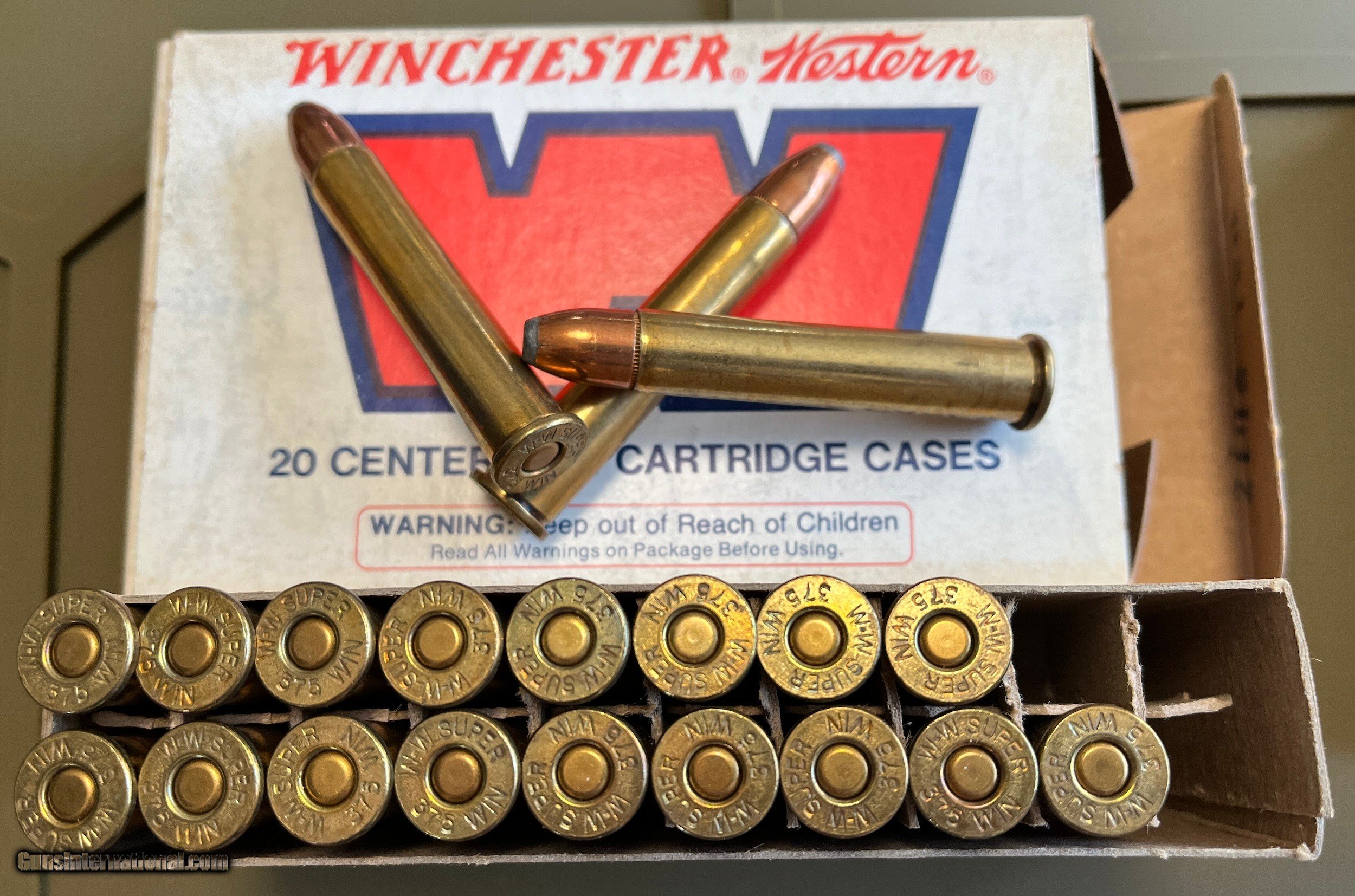 Description: Full box of Win. 375 Super X 200 gr. soft point. Shipping $15.00 Two boxes available, same shipping price for both. SOLD Rifle Caliber: .375 Winchester |