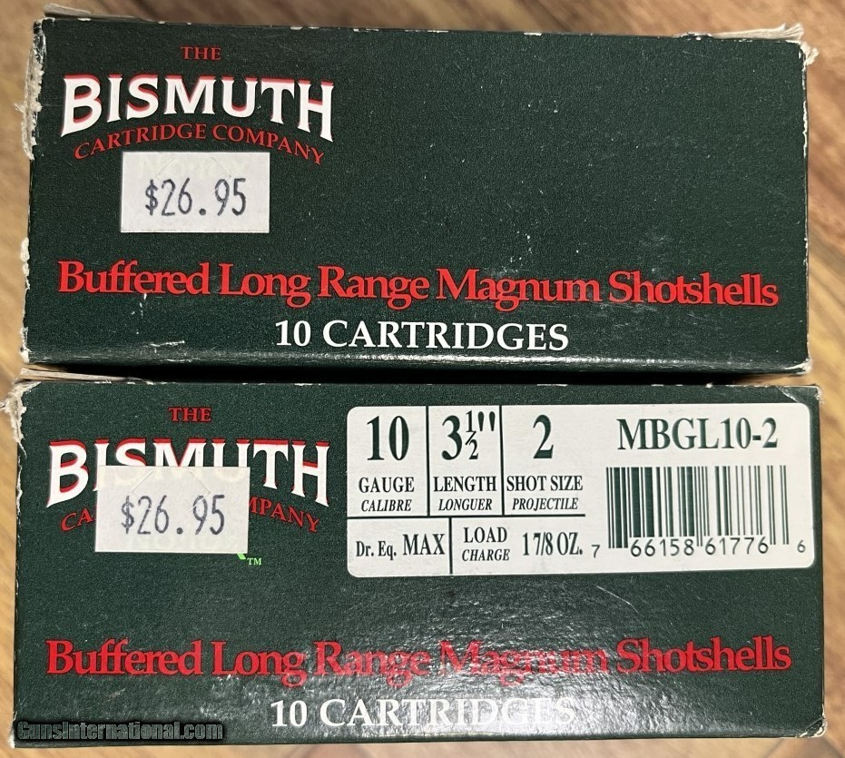 Bismuth 10 Gauge Shotshells 3 1/2" #2 Shot **$60 shipped for 2 box lot**