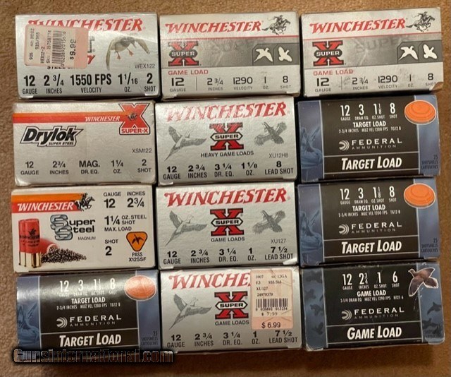 Description: Mixed boxes (and loose) 12 gauge shotgun shells: 350 shells- primarily 2, 6, 7 1/2, and 8 shot. See pics. Almost all shells are hi brass, hi velocity for long range hunting/shooting. Approximately 45-50 loose shells (not in boxes of 25) . See pics of loose shells for better sense of shot size and shell length. Shipping is $50 in lower 48 with $30 surchrage to AK or HA. Payments: wire transfer or check (items will be shipped 48 hours after funds are received so funds clear). SOLD Shotgun Gauge: 12 Gauge |