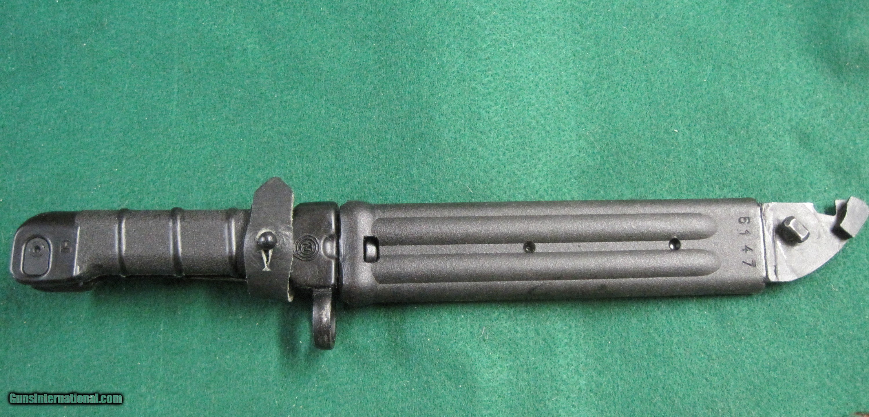 Description: I was told this bayonet was recently brought back from Ukraine. Knife bayonet for use with the 5.45 mm. Kalashnikov AK74 assault rifle. This bayonet will also mount to the 7.62 mm. AKM assault rifle. Ship $10 SOLD |