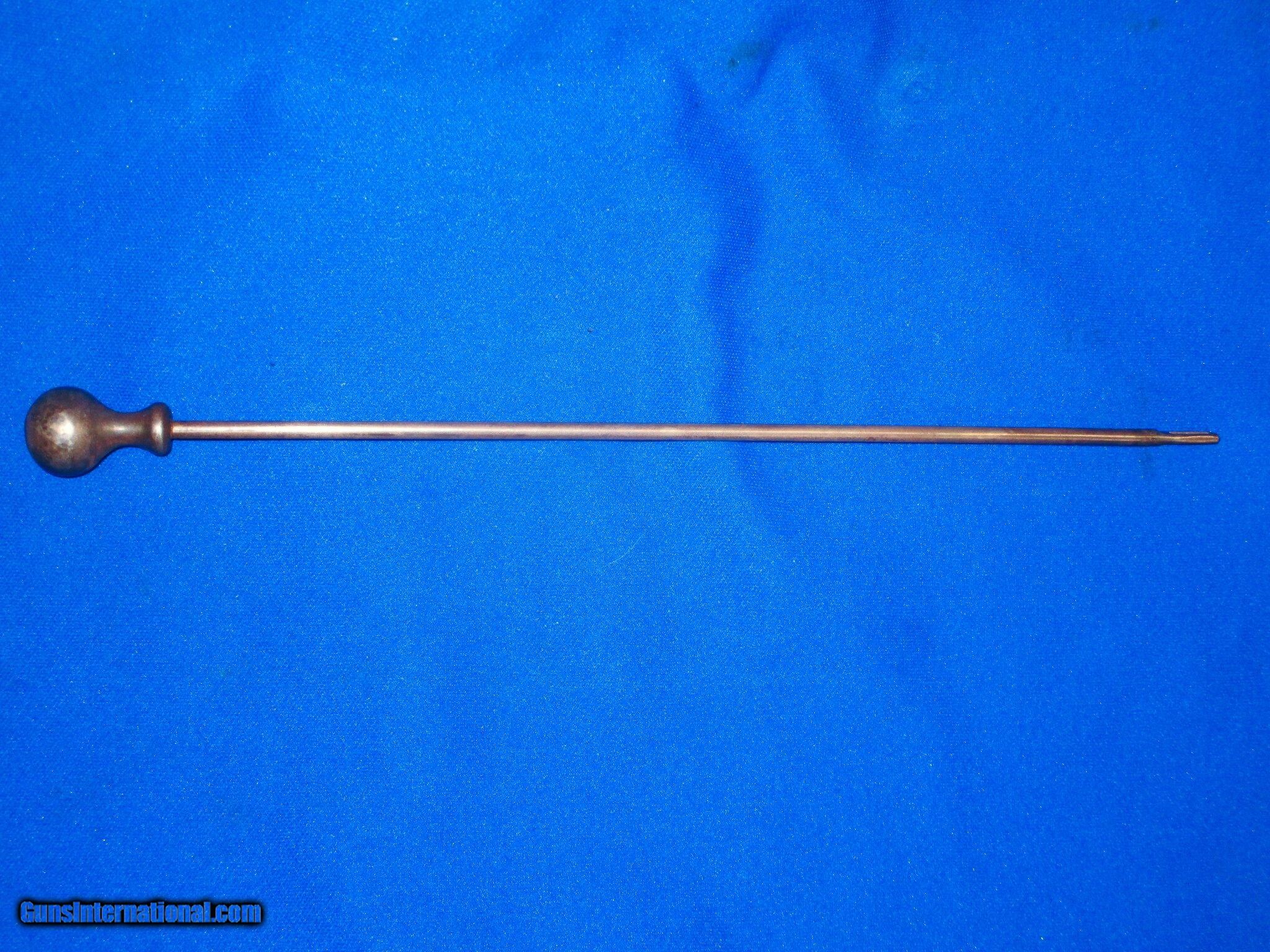 Description: A Scarce Civil War Percussion Colt Model 1851 Navy Revolver All Iron Cleaning Rod In Nice Untouched Condition. All original and complete. The cleaning rod is nice throughout with an even natural patina on it. It has no damage to it. These Colt Navy Cleaning Rods Are Very Hard To Come By And Are Found Inside Cased Navy Sets. They Can Also Be Displayed With A Colt Navy That Is Not Cased! SOLD |