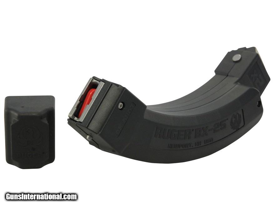 Description: All the fun and reliability of the BX-25 10/22 magazine times two. Works with any factory original .22LR Ruger 77/22, 10/22, and SR 22. Some higher capacity magazines may not be legal in all states and locales due to laws limiting magazine capacity. Please check your state and local regulations to verify that you may legally posses such magazines. NOT NY COMPLIANT SOLD |
