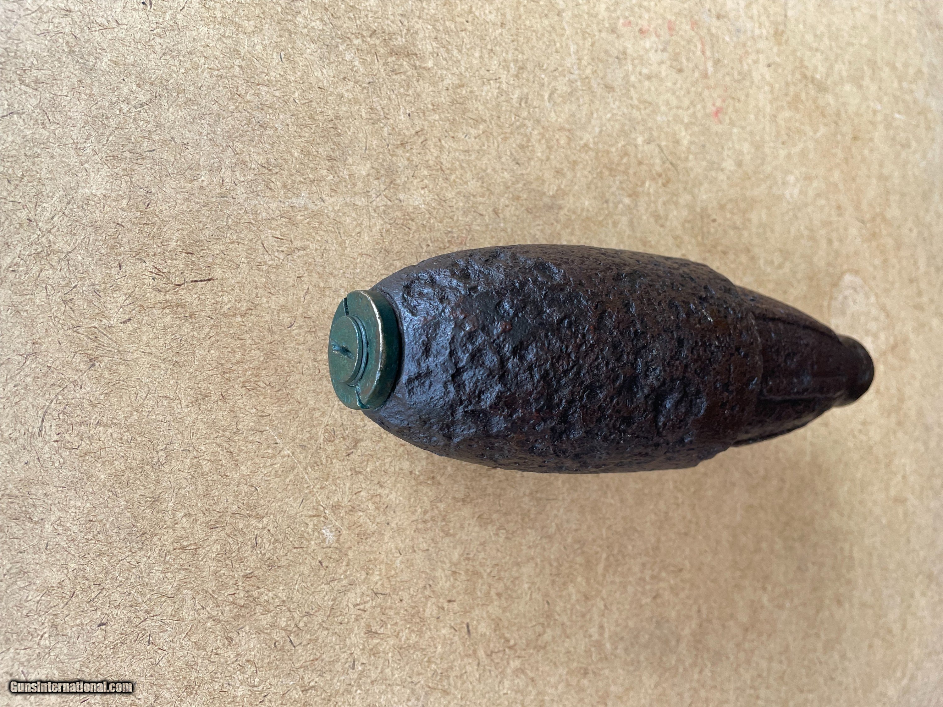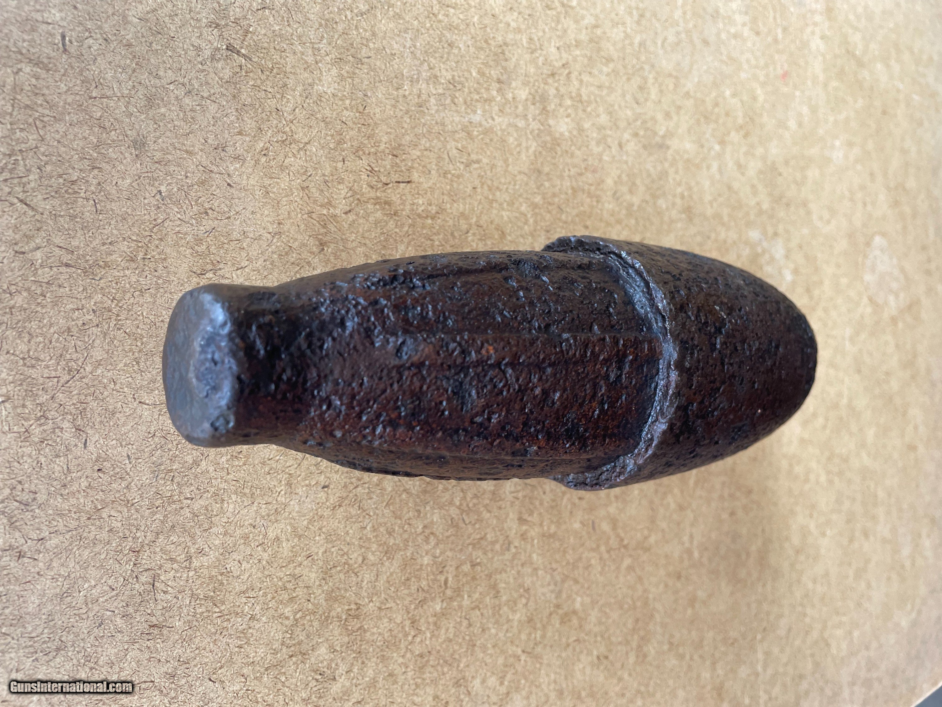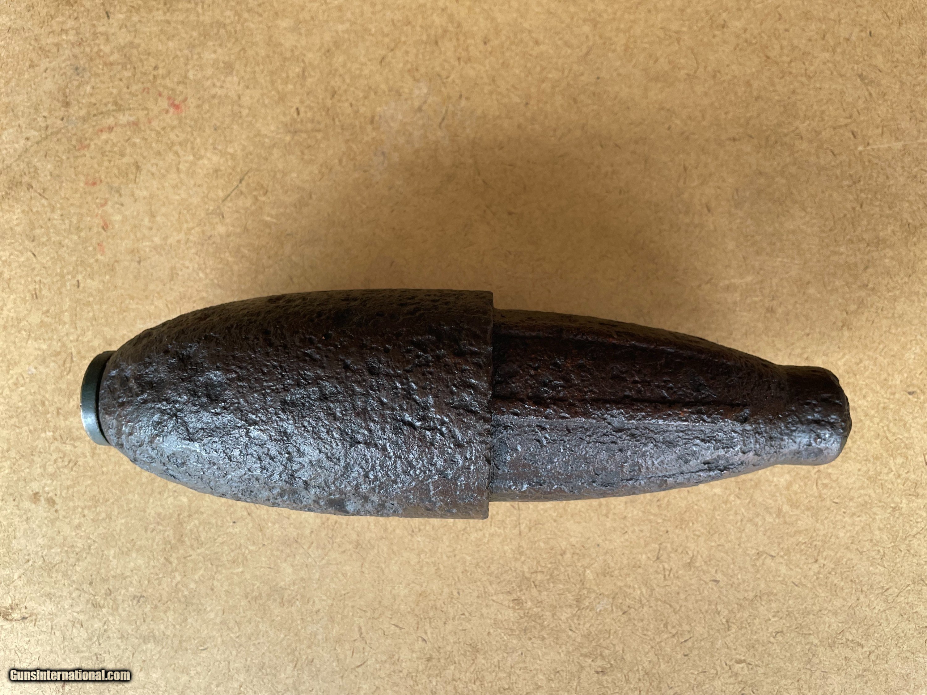 Description: Original Civil War Federal US Army Schenkl Artillery Shell 3-Inch Ordnance Rifle. Up for grabs is a beautiful 3-Inch Ordnance Rifle Schenkl Artillery Shill in dug relic condition. Someone did an outstanding electrolysis cleaning preserving this iron Civil War relic. The fuze, Schenkl percussion, is in very good uncleaned original condition with a 1861 patent date. Please email if you have any questions. A+ rating on GB (joejoeandme) since 2001 and, 100% positive feedback on eBay(joejoeandme) since 1996. This is a real nice one don't let it get away. Thank you for looking. SOLD |