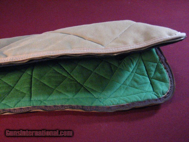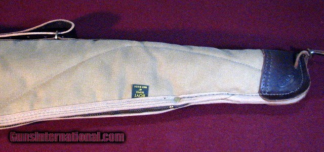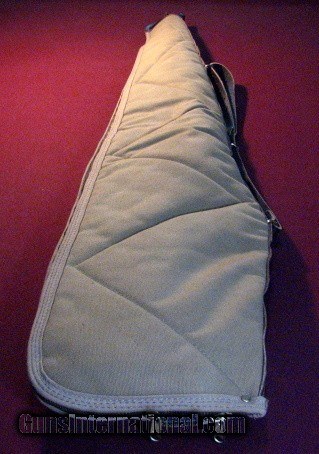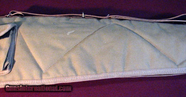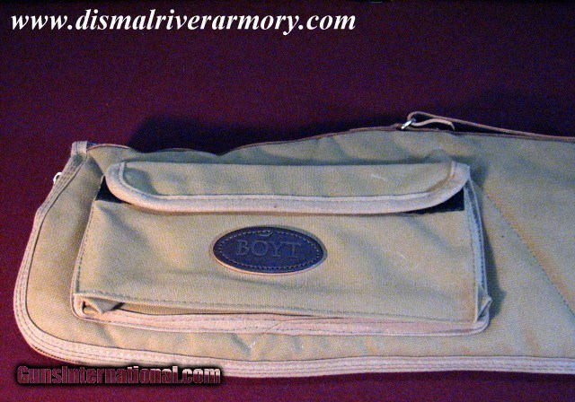 Description: Boyt 48" canvas and leather scoped rifle case. Outside storage pouch. YKK zipper. Quilted cloth interior. Very good condition. SOLD |