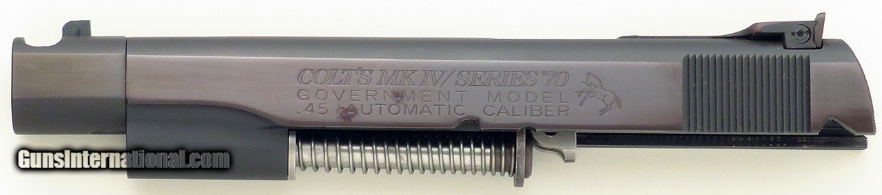 Description: Custom Colt 1911 .45 ACP slide. Features include a 5-inch Wilson barrel, 1.15-inch extended single port compensator with sight and a Behlert adjustable rear sight. The work is of high quality but unattributed. CONDITION: The bore is strong and bright. Metal finish is approximately 85 percent with slight plumming and minor areas of tarnish. The price is firm. $1,000 plus shipping. SOLD Handgun Caliber: .45 ACP (.45 Auto) |